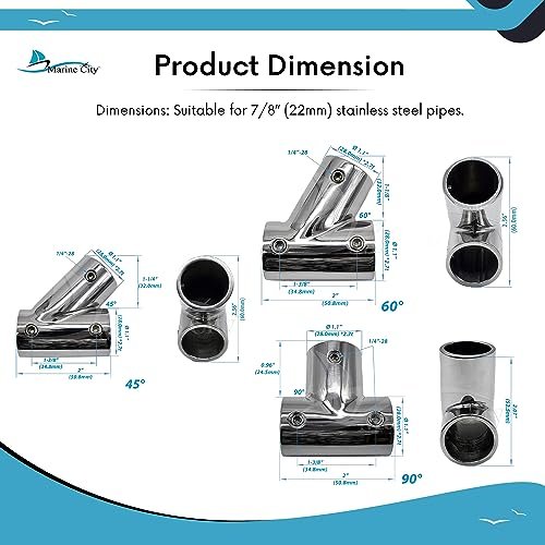 With a angle, these 3-way connectors allow you to install Bimini tops, handrails, and railing systems easily and securely. The mirror-polished finish not only adds a sleek look but also enhances durability, making it ideal for long-term use on boats, yachts, ships, and kayaks.