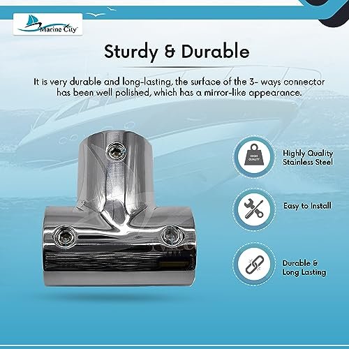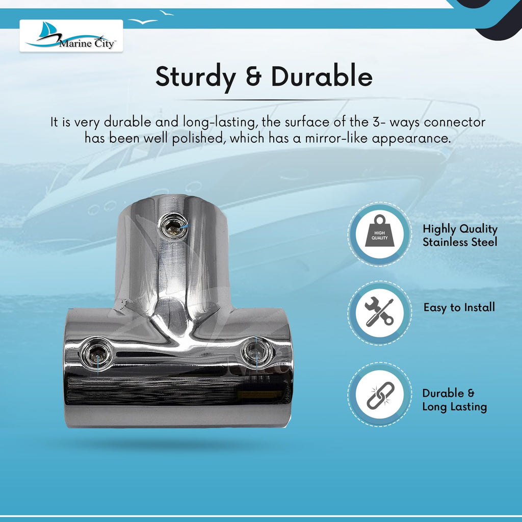 The Marine City 304 Stainless Steel 3-Way Tee Connector Hand Rail Fittings (Pack of 2) are designed for marine-grade strength, durability, and professional appearance. Crafted from 304 stainless steel, these connectors resist rust, corrosion, and harsh weather conditions at sea.