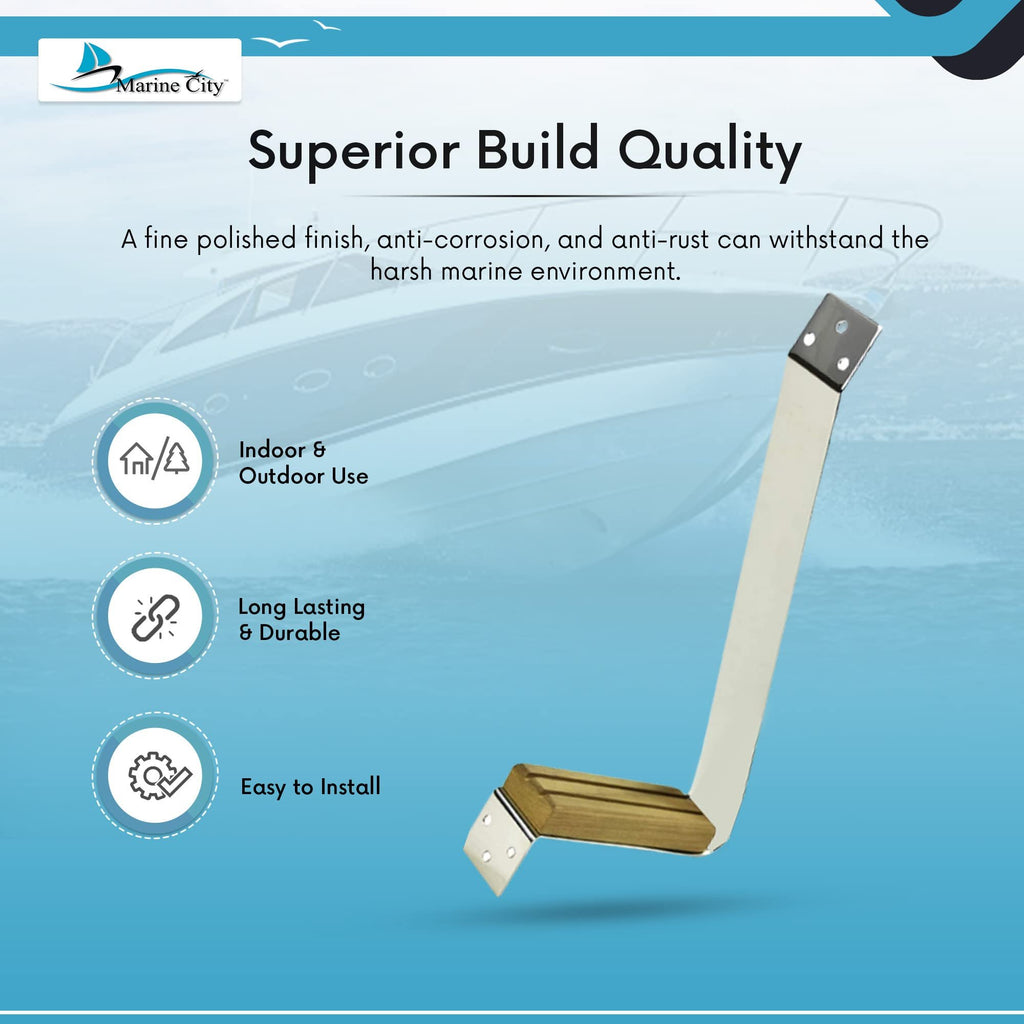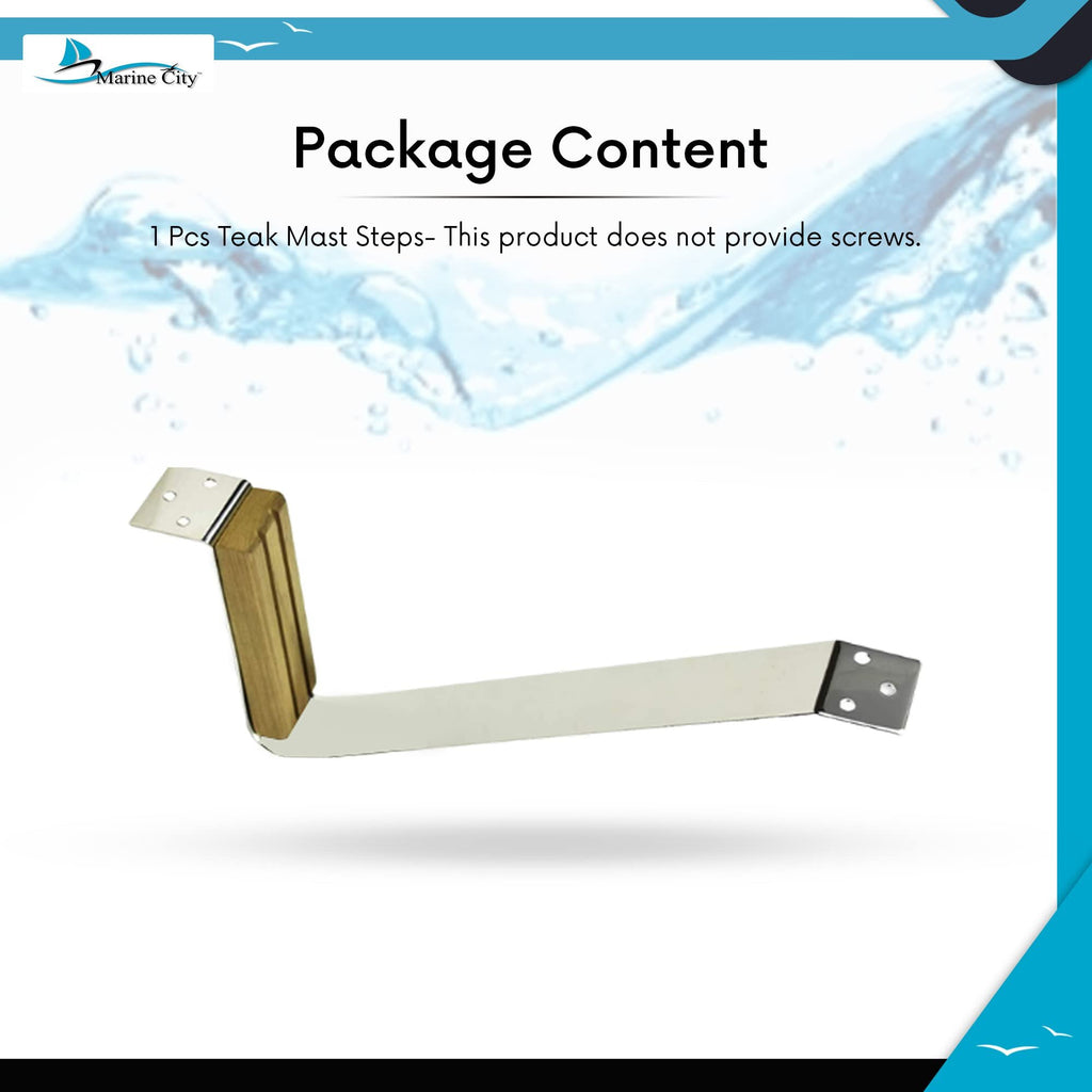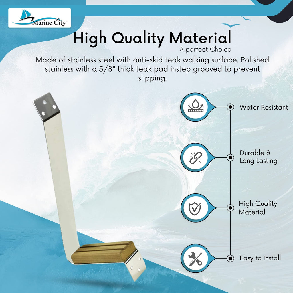 Marine City Teak Mast Step – Stainless Steel with Anti-Skid 12" x 5" Teak Pad