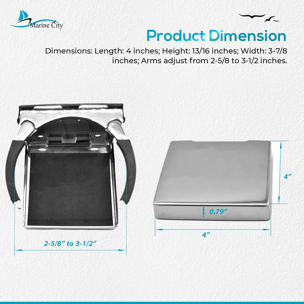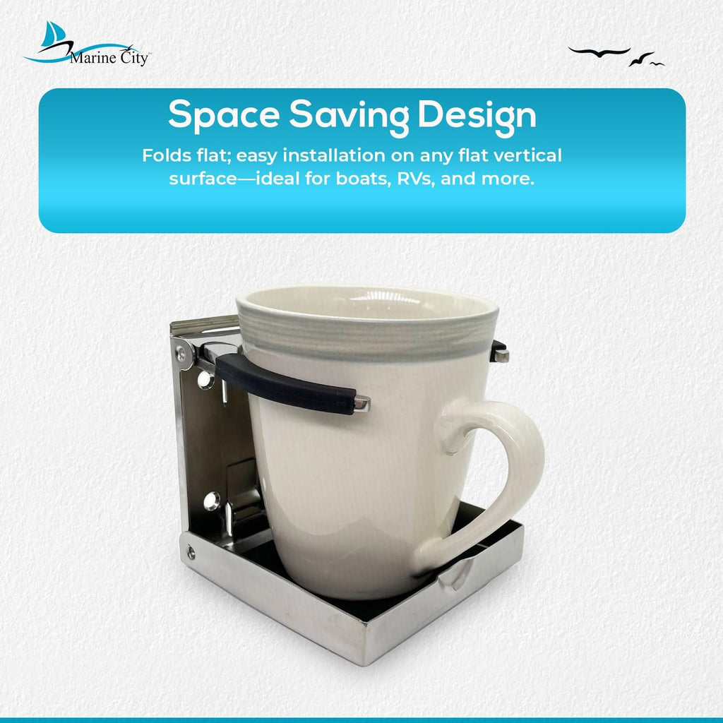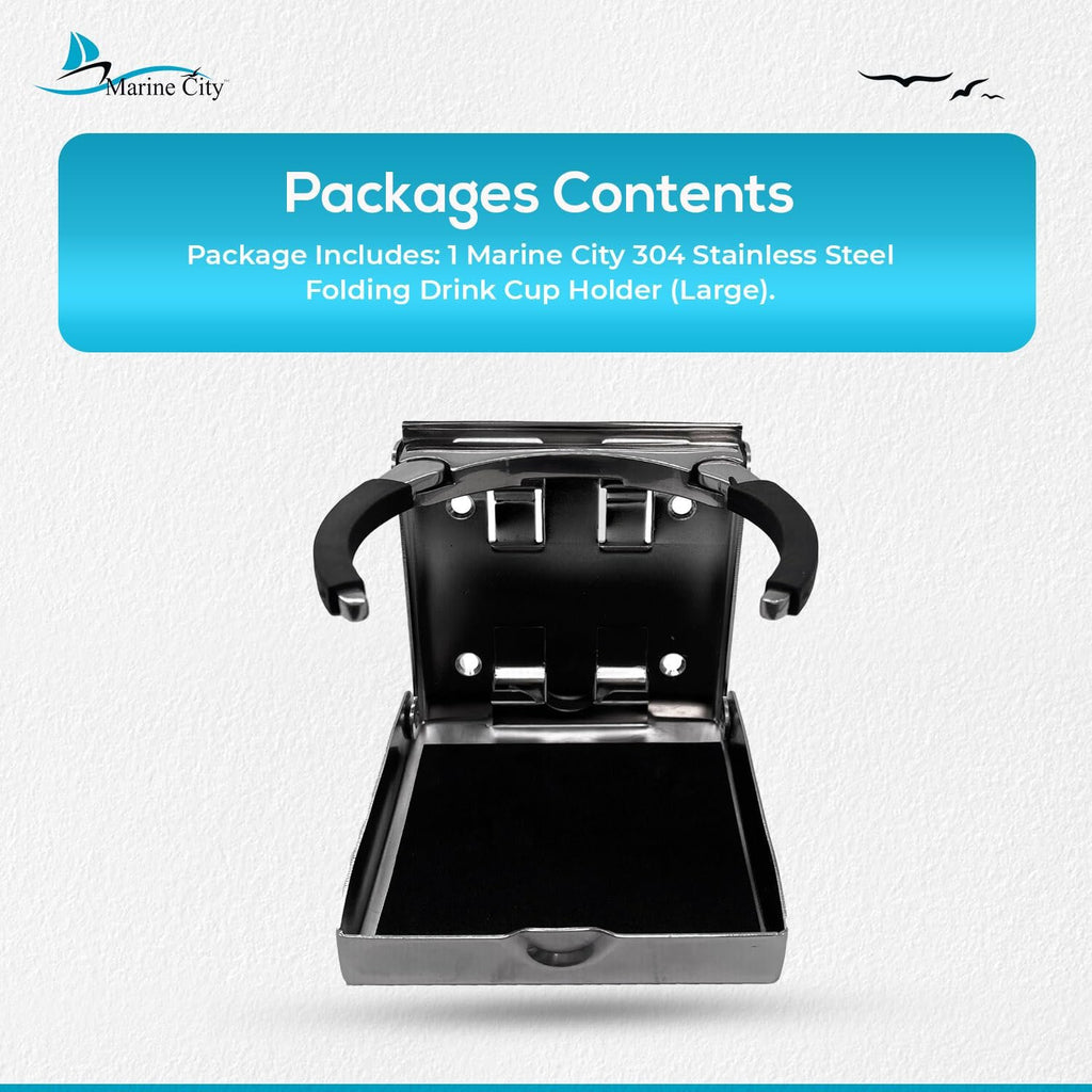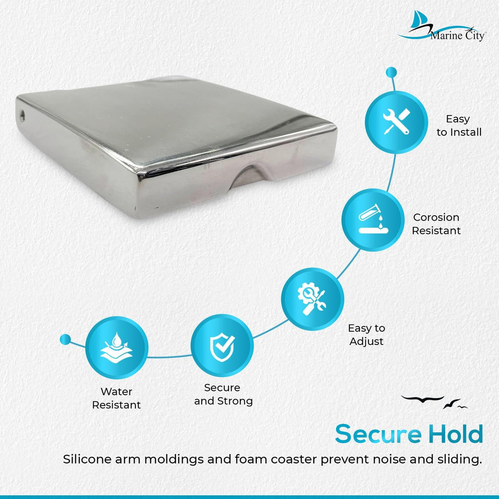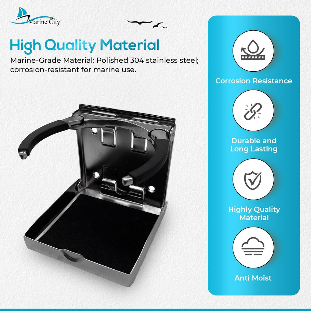 The Marine City Adjustable Folding Cup Holder – Large, 304 Stainless Steel Polished is designed for secure and convenient drink storage on boats, watercraft, RVs, and vehicles. Made from polished marine-grade 304 stainless steel, this folding cup holder is durable, corrosion-resistant, and built to withstand harsh marine conditions.
