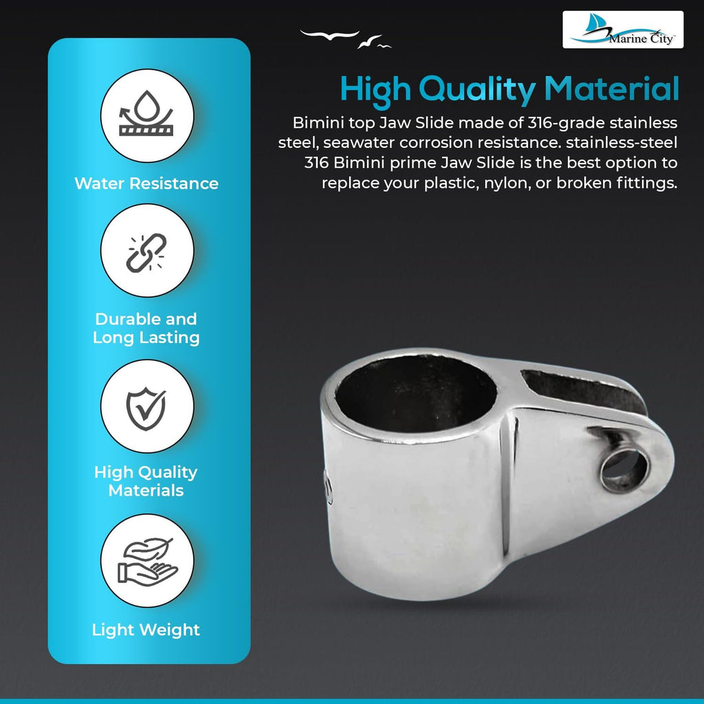 The MARINE CITY 316 Grade Stainless Steel Bimini Top Jaw Slide (7/8”) is a premium marine hardware fitting designed for strength, durability, and long-term corrosion resistance in saltwater environments.