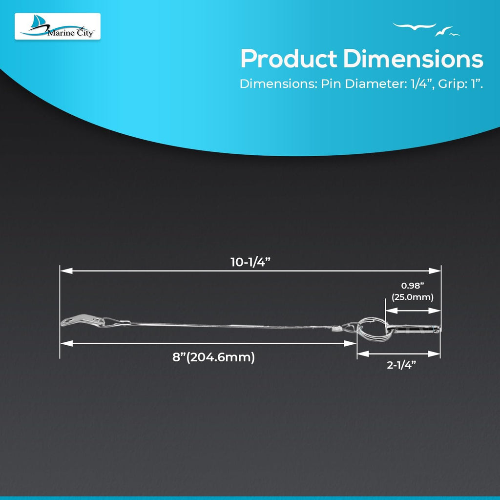 The Marine City 304 Stainless Steel Bimini Top Quick Release Pin with Cable is a premium marine accessory designed for boats, yachts, ships, and deck hinges. Crafted from polished 304-grade stainless steel, it is corrosion-resistant and durable, built to withstand harsh marine conditions.