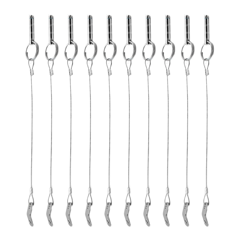 Its spring-loaded ball tip ensures a secure hold under vertical loads, yet it releases cleanly with a sideways pull for easy installation or removal. The nylon-coated cable prevents loss and ensures convenient handling.