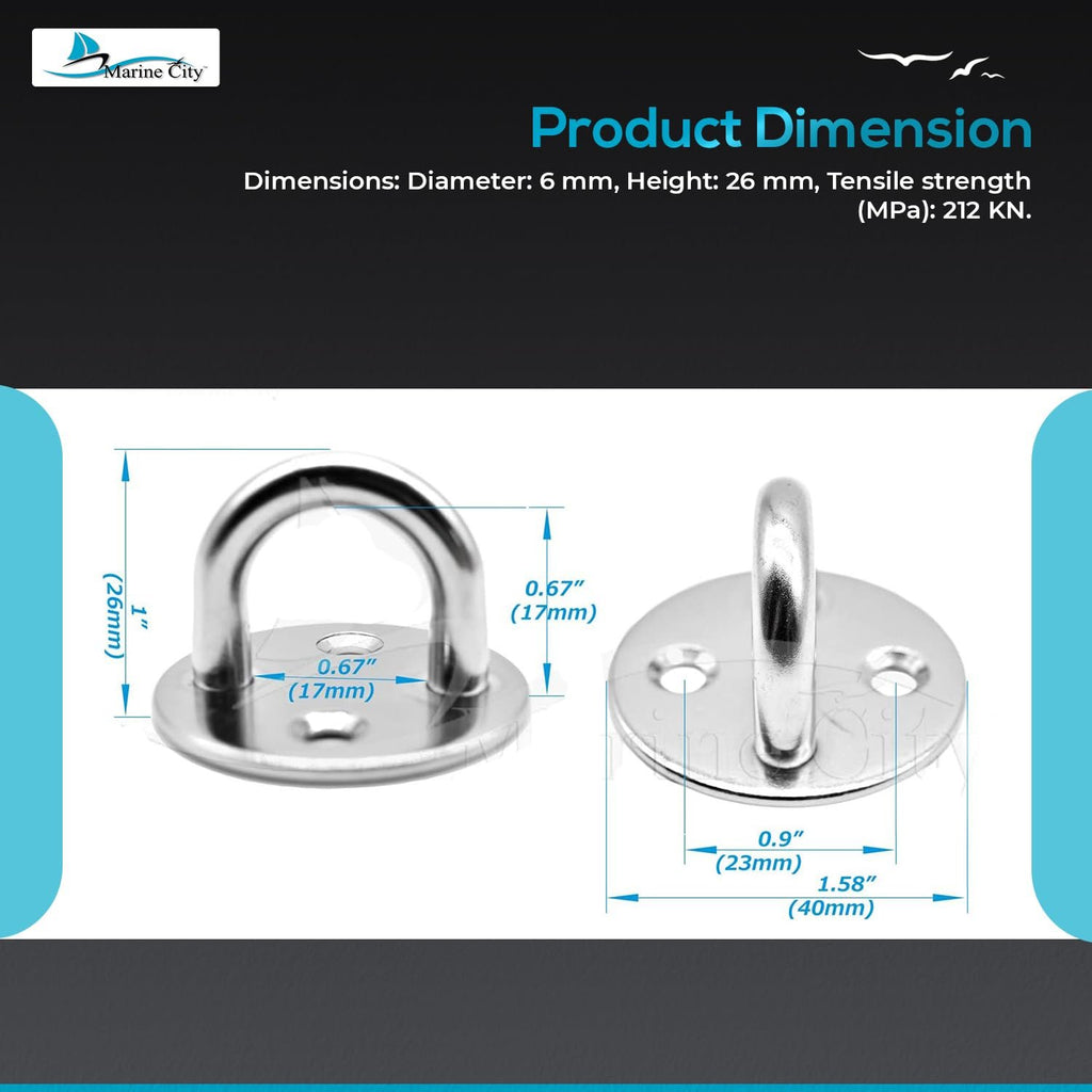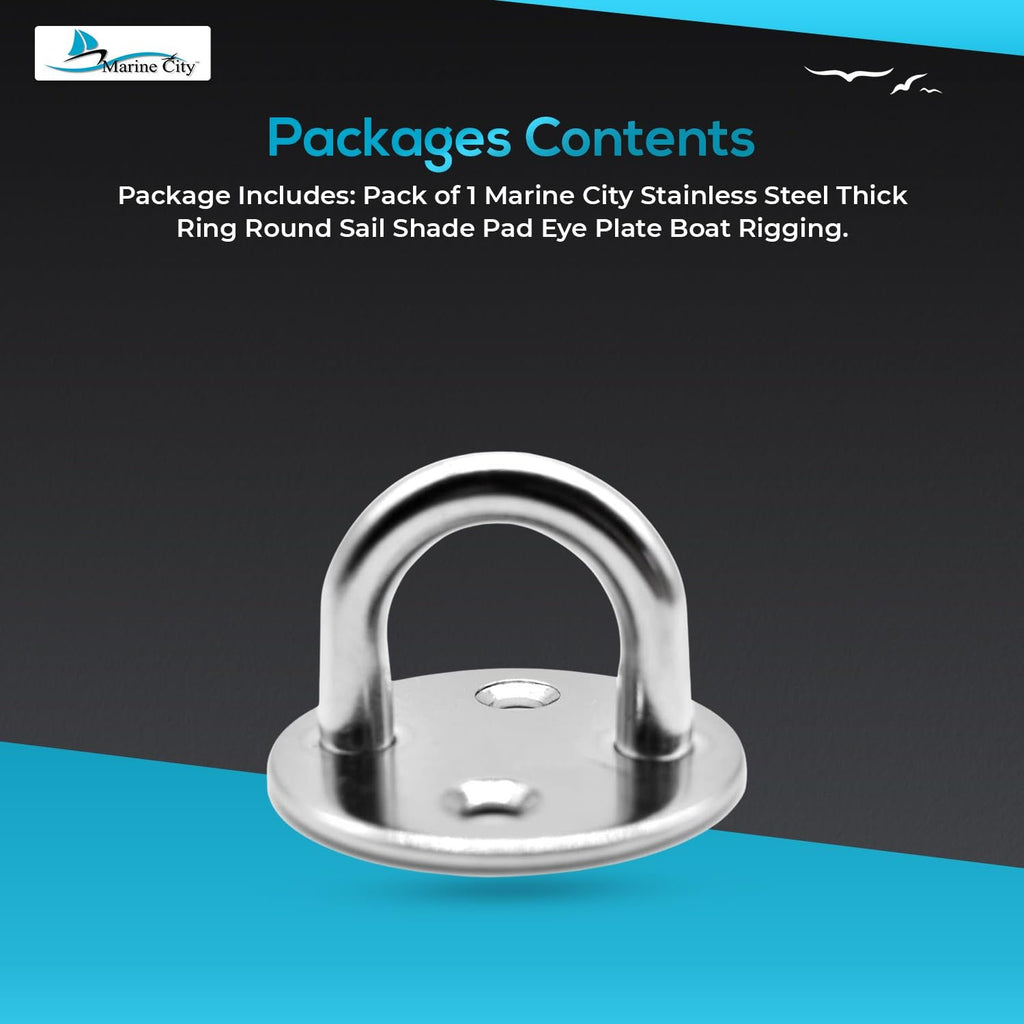 The Marine City Medium Thick Ring Round Sail Shade Pad Eye Plate is a premium marine-grade mounting solution designed for strength, durability, and long-term performance in demanding environments. Manufactured from 316-grade stainless steel, this pad eye offers excellent resistance to rust, corrosion, and saltwater exposure.