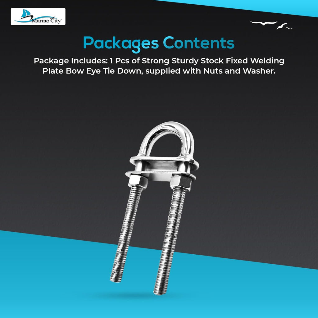 Marine City Stern Bow Eye Tie Down U-Bolt–304 Stainless Steel Welding Plate 4.5"