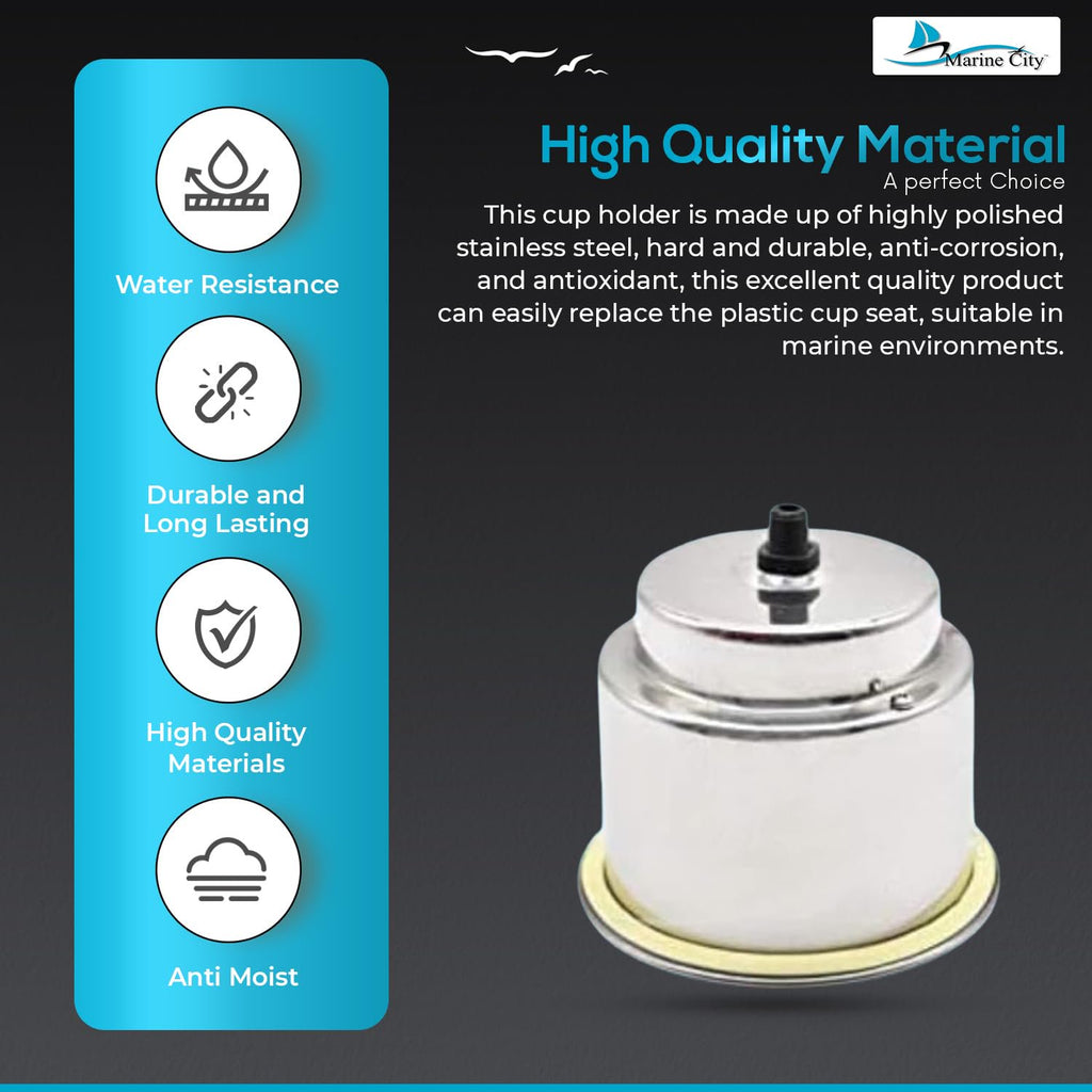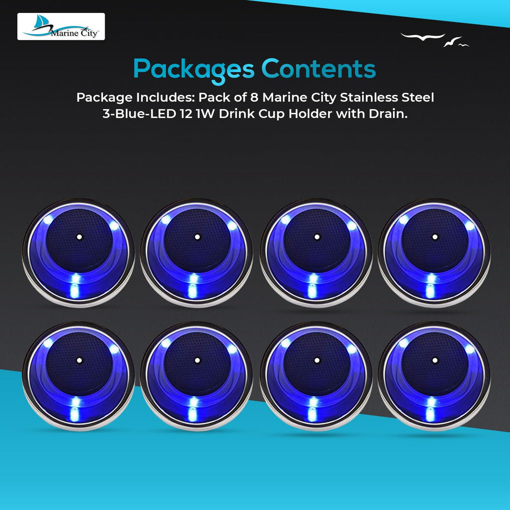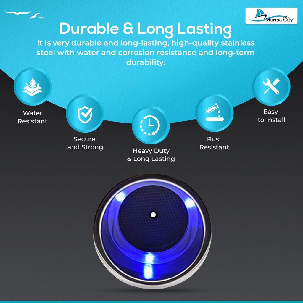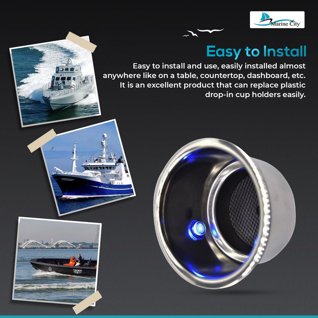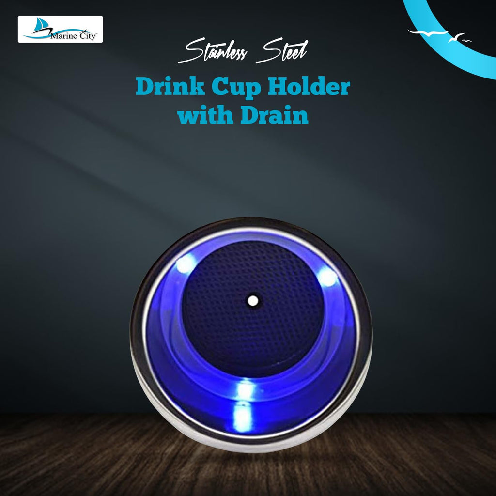 The Marine City Stainless Steel Drink Cup Holder with Drain & 3 Blue LED Lights combines durability, functionality, and modern style for marine and recreational applications. Constructed from highly polished stainless steel, this cup holder is corrosion-resistant, long-lasting, and built for demanding environments.