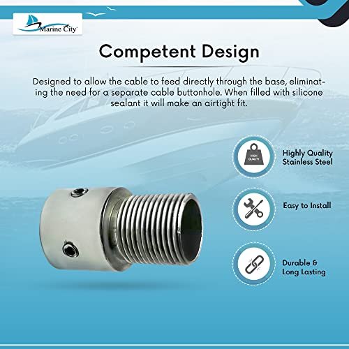 This 1-inch tube mount with a 14-top thread (male) fits standard antenna mounts and is suitable for small VHF, GPS, or TV antennas, making it perfect for boats, yachts, kayaks, and other marine vessels. The sturdy stainless steel construction ensures long-lasting durability, even in challenging marine conditions.