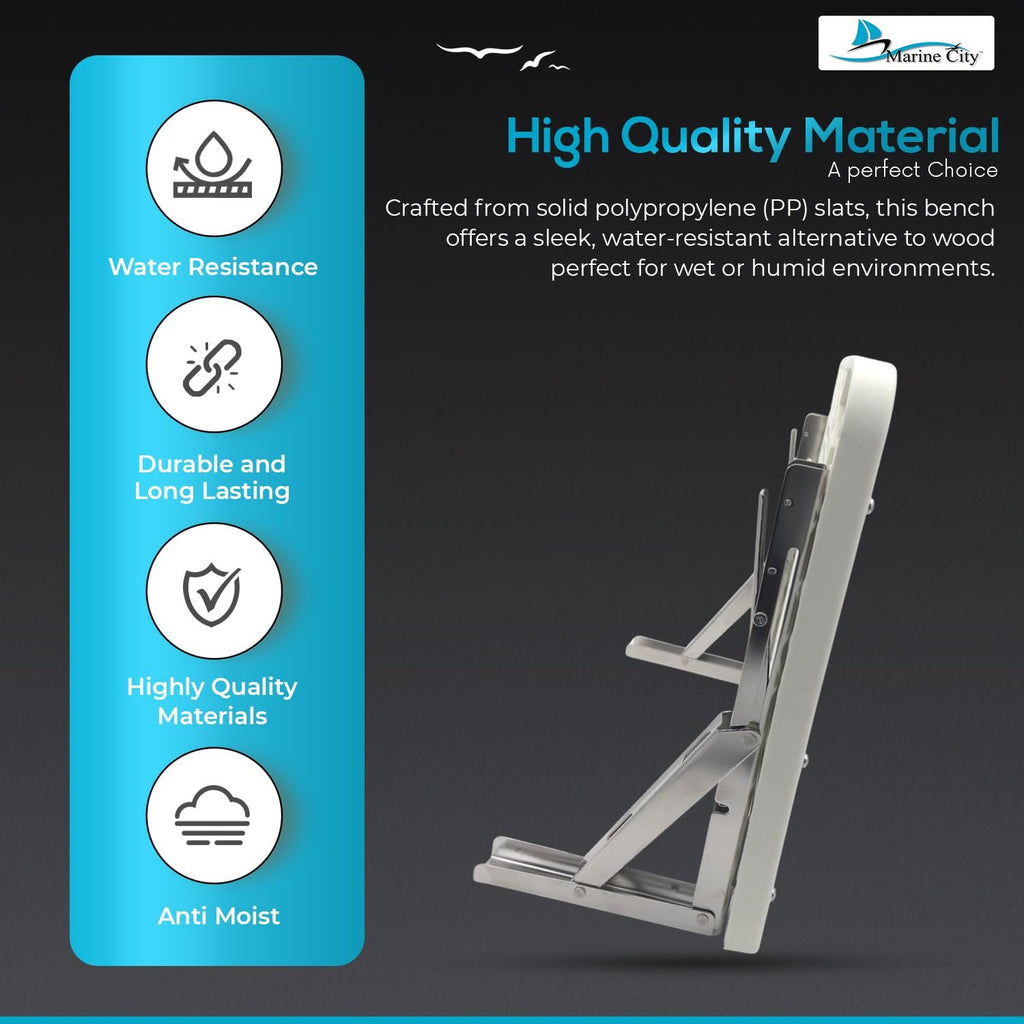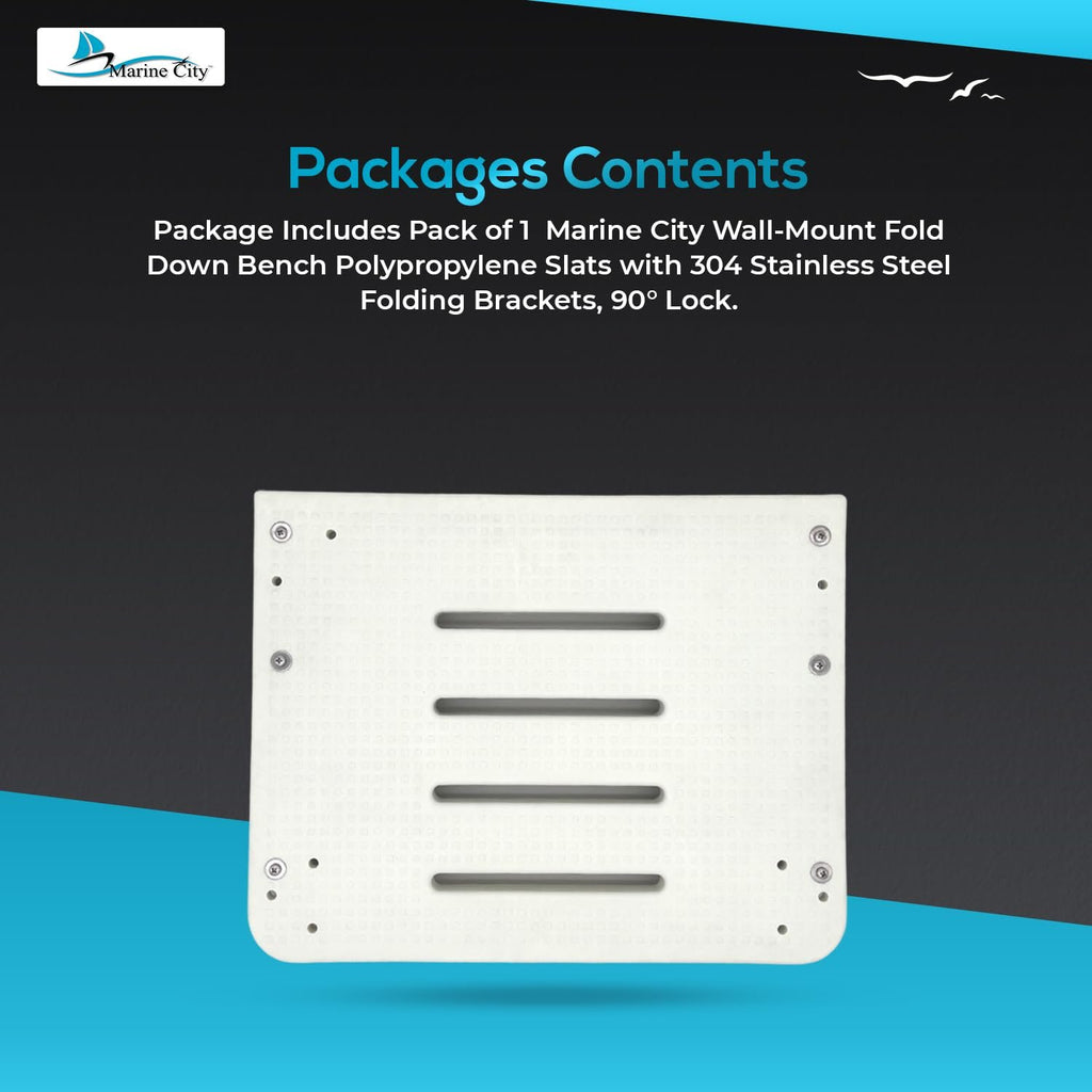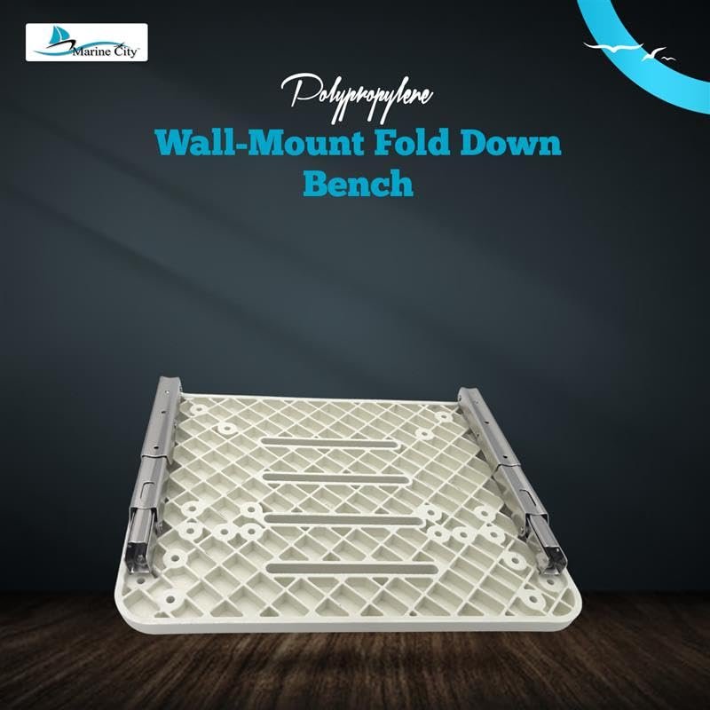 MARINE CITY 18"x13" Wall-Mount Fold Down Bench – Polypropylene Slats w – Marine City Hardware