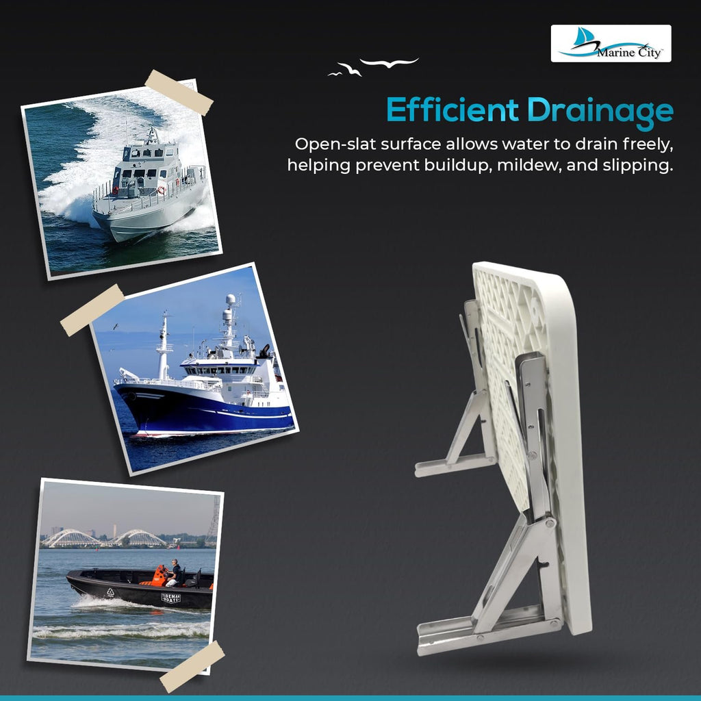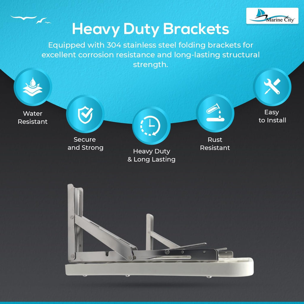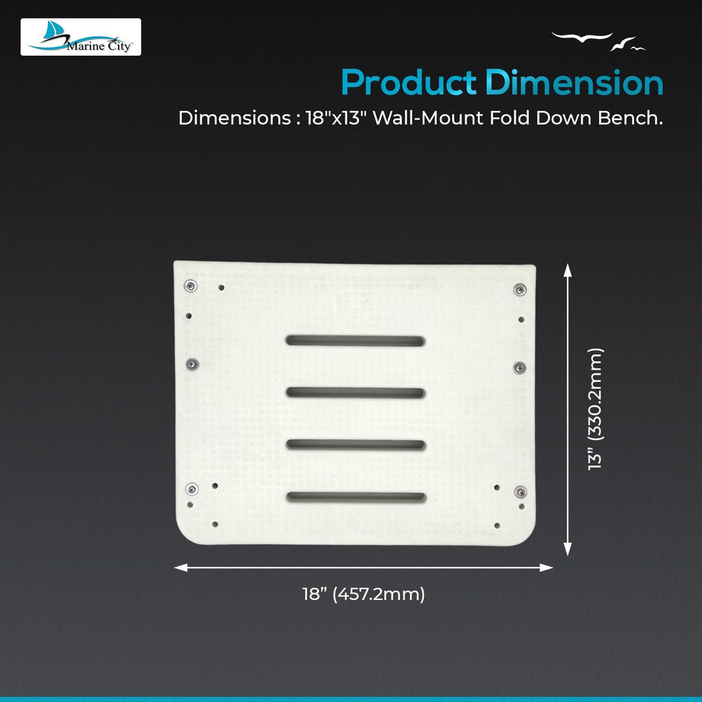 MARINE CITY 18"x13" Wall-Mount Fold Down Bench – Polypropylene Slats with 304 Stainless Steel Folding Brackets, 90° Lock, Water-Resistant, for Boats, Showers, Saunas