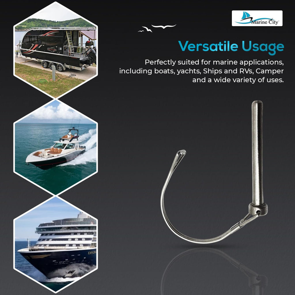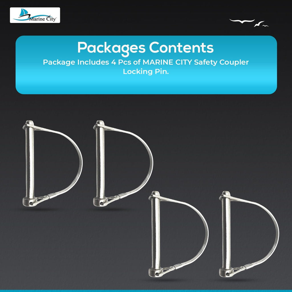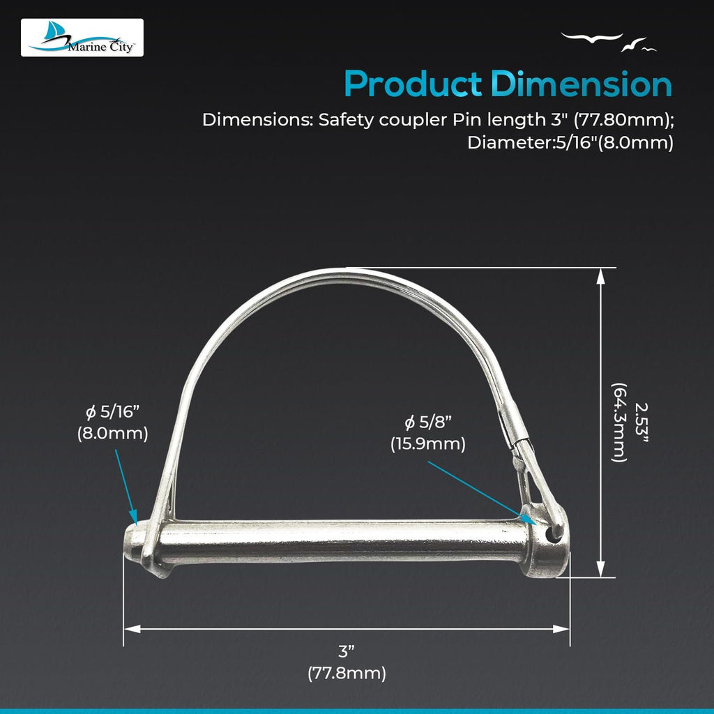 The Marine City 5/16” Heavy Duty Stainless Steel Safety Coupler Locking Pins (Pack of 4) are built to provide secure and reliable connections for boats, yachts, trailers, and PTO hitches. Crafted from solid stainless steel, these pins are durable, corrosion-resistant, and rust-proof, making them ideal for harsh marine environments.