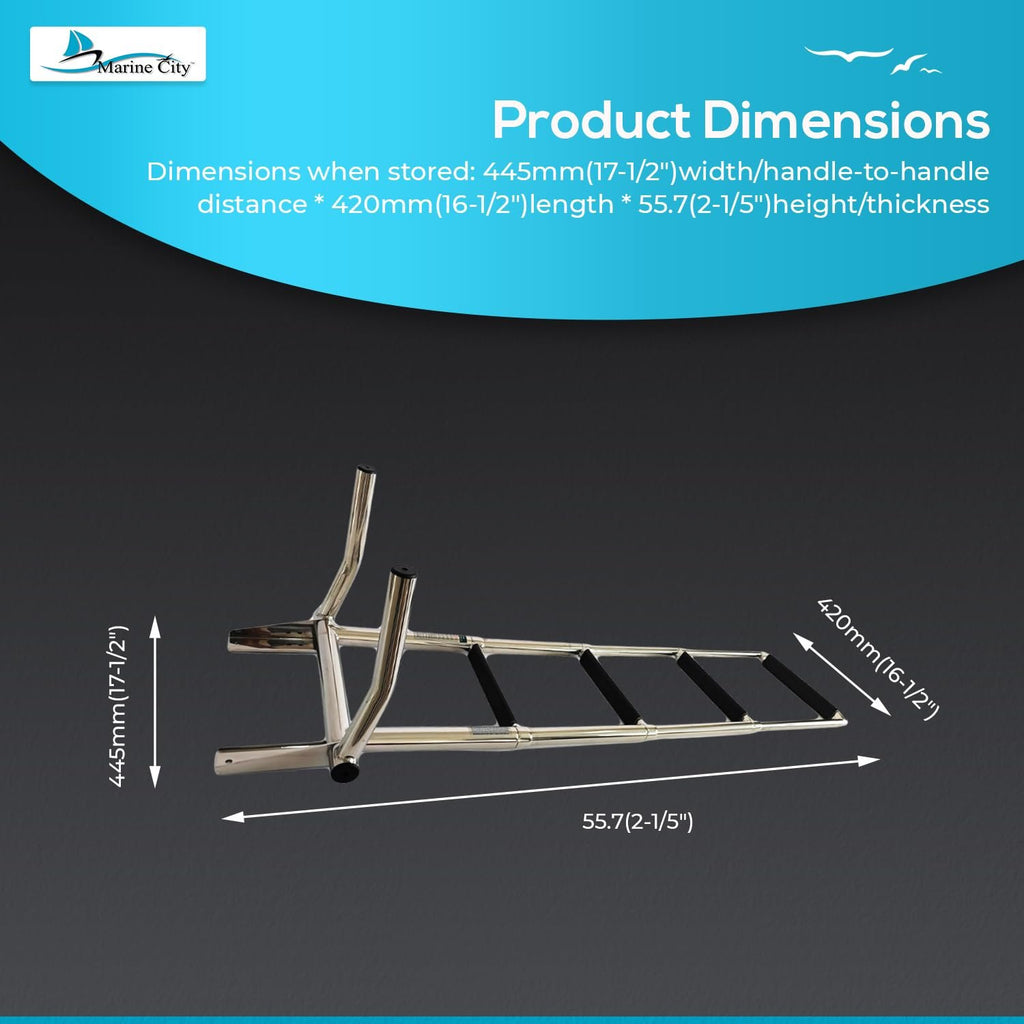 Perfect for swim platforms and over-platform boarding, this Marine City ladder combines strength, safety, and premium craftsmanship for boats, yachts, and marine vessels.