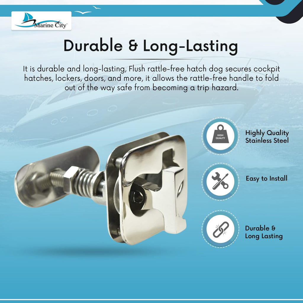Its flush, rattle-free T-handle design keeps the latch folded neatly when not in use, preventing it from becoming a trip hazard on deck. The solid T-handle allows a 2–3 finger grip, making it easy and comfortable to lift larger hatches or locker covers.