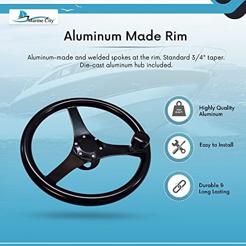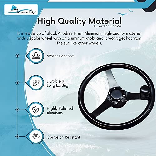The Marine City 13.5-Inch Black Anodized Aluminum Sports Steering Wheel combines style, durability, and marine-grade performance for boats, yachts, kayaks, and ships. Constructed with high-quality black anodized aluminum, this wheel resists corrosion, provides a comfortable grip, and prevents heat buildup from direct sunlight.