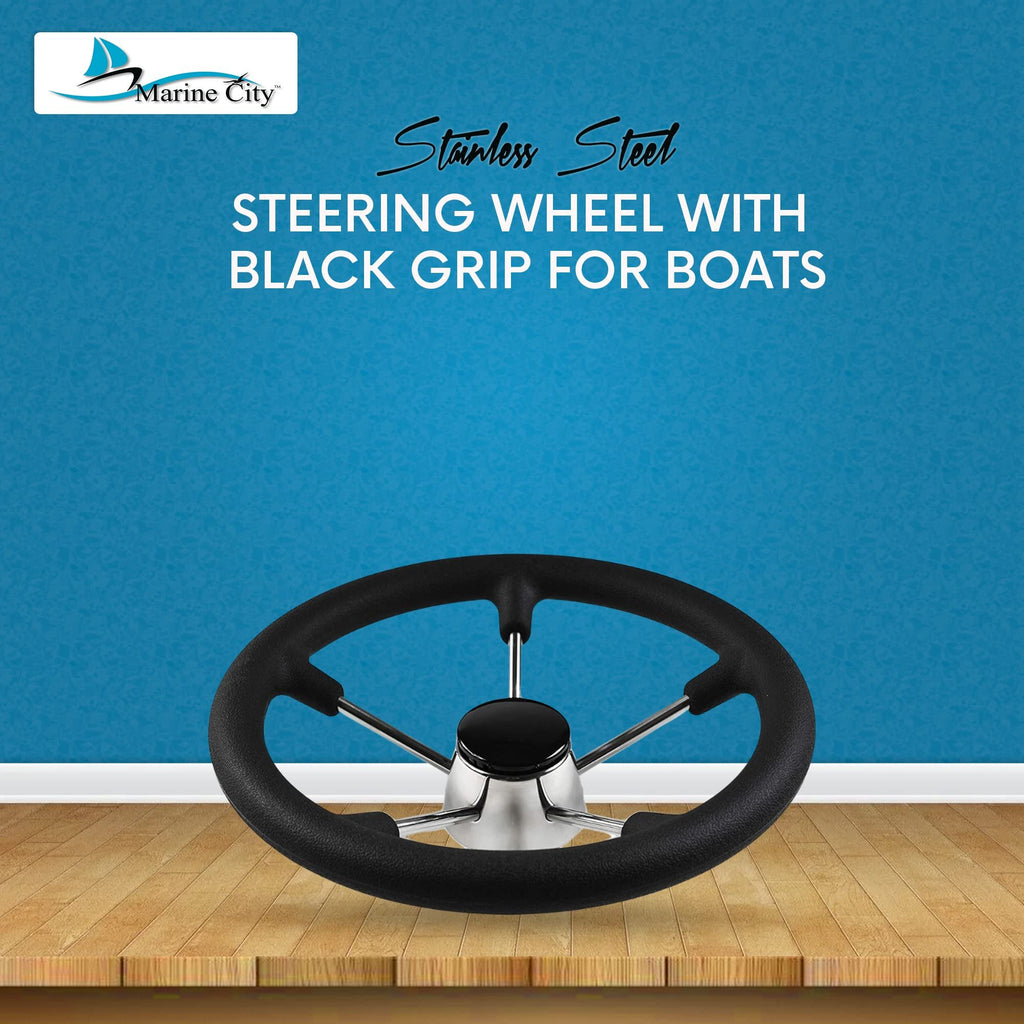 Marine City 13-1/2 inches Boat Stainless Steel Steering Wheel with Bla – Marine City Hardware