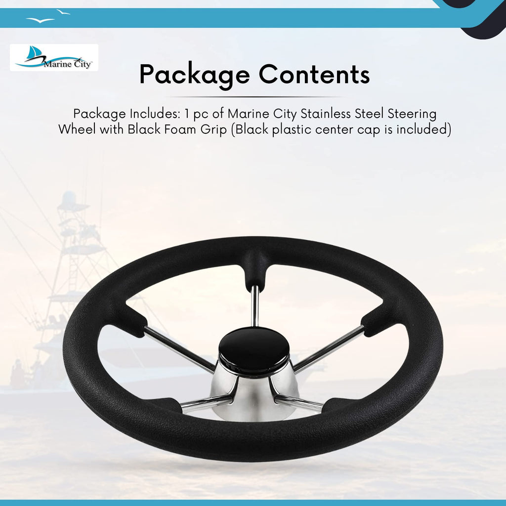 Marine City 13-1/2 inches Boat Stainless Steel Steering Wheel with Black Foam Grip (Diameter: 13-1/2 inches)