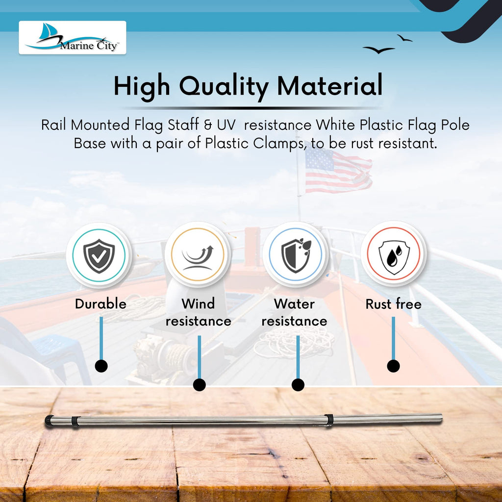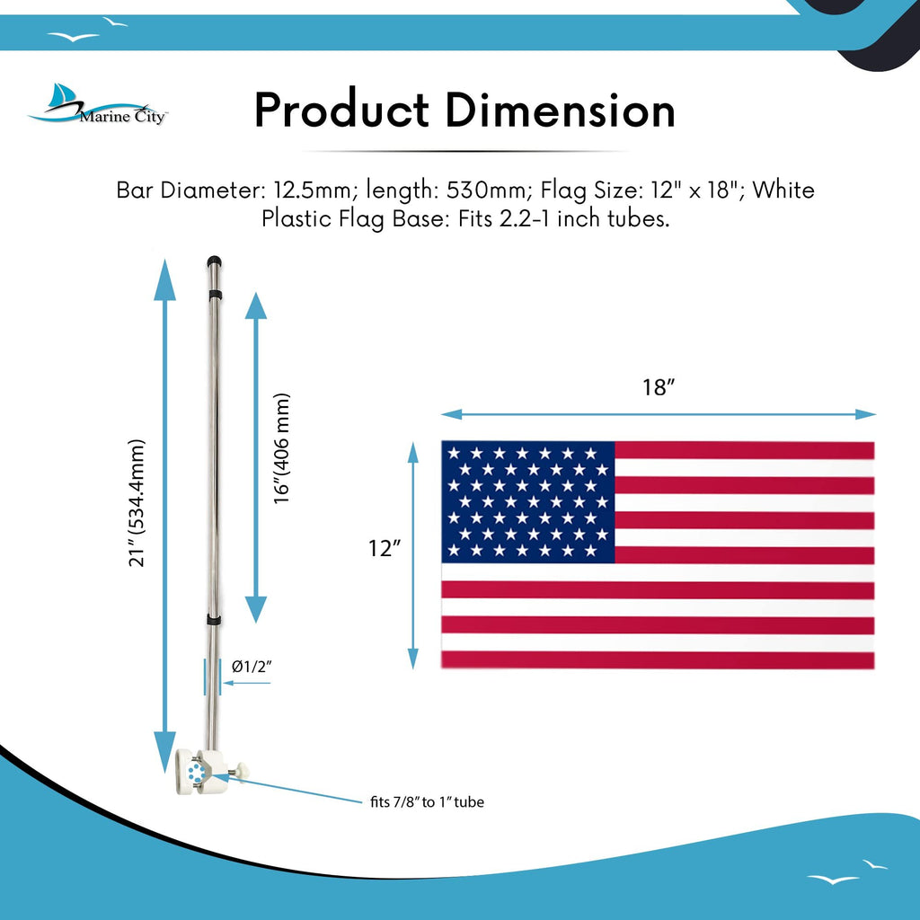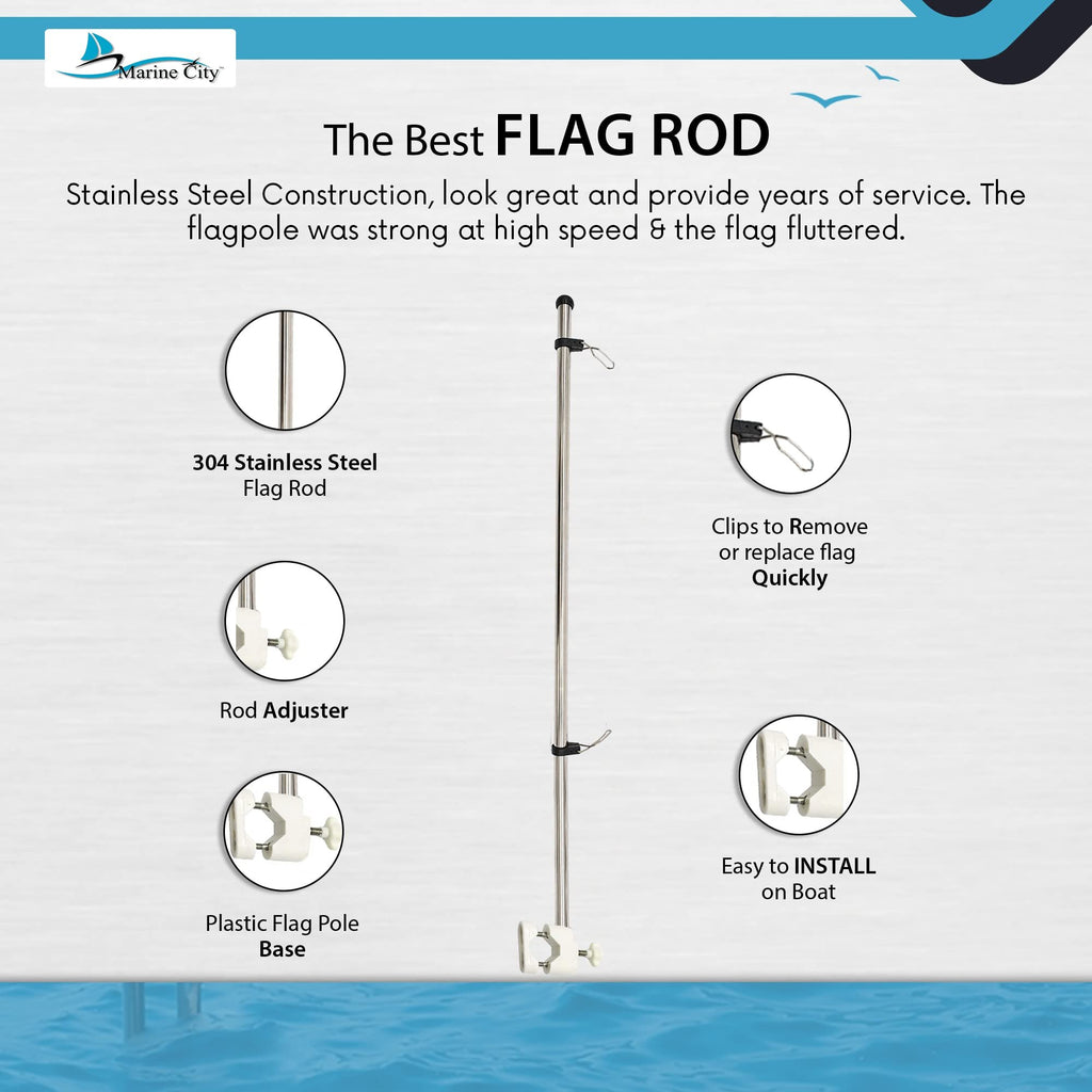 The included 12"x18" US flag flutters beautifully in motion, making it perfect for boats, yachts, RVs, and marine use. Adjustable clamps allow quick flag replacement, and the sturdy construction ensures stability even at high speeds.