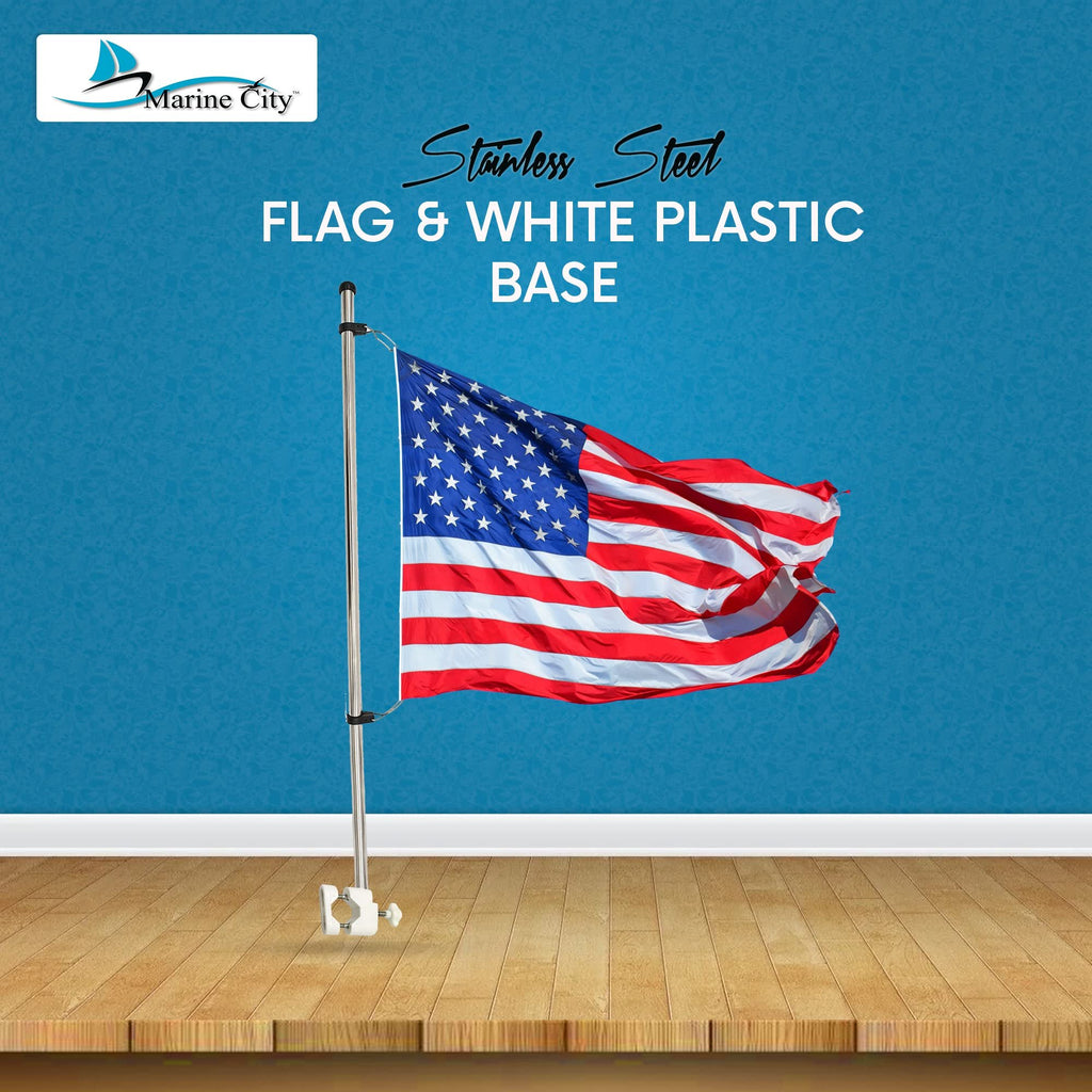 Show your patriotism with the Marine City 21" Rail Mounted Flag Staff with White Base & 12"x18" US Flag. Constructed from durable 304 stainless steel, this rail-mounted flagpole features UV-resistant white plastic clamps for easy installation and long-term corrosion resistance.