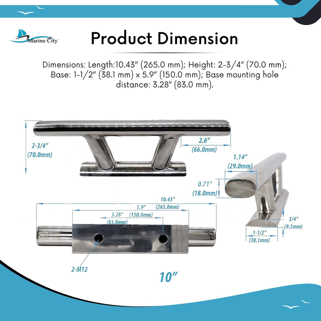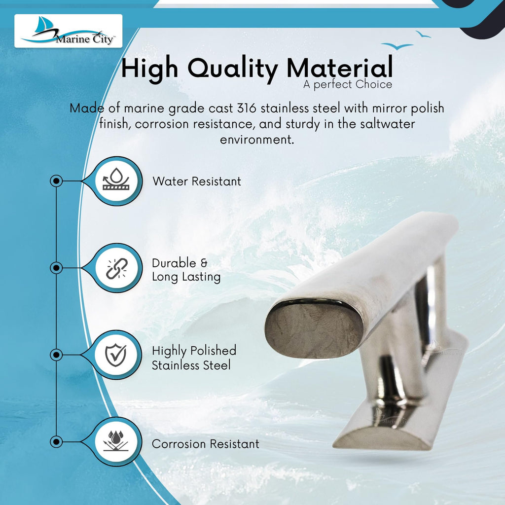 The Marine City 10-Inch Mooring Bollard Cleat with Curved Base is engineered for superior performance and durability in harsh marine conditions. Crafted from marine-grade cast 316 stainless steel, this cleat offers exceptional resistance to rust, corrosion, and saltwater exposure.