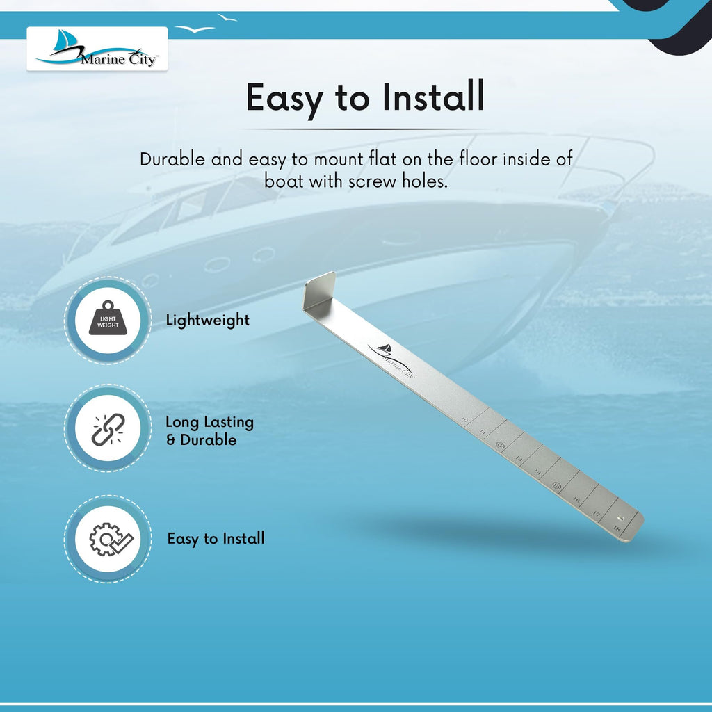 Marine City 18-Inch Aluminum Fishing Ruler – Durable Mount Fish Measuring Tool