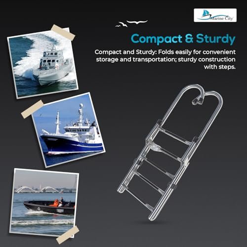 The Marine City 2+3 Step Telescoping Folding Ladder is a premium solution for boarding boats, pontoons, RVs, or ships safely and conveniently. Crafted from 304-grade stainless steel, this ladder offers a sleek polished look while providing durability, corrosion resistance, and long-lasting performance in harsh water environments.