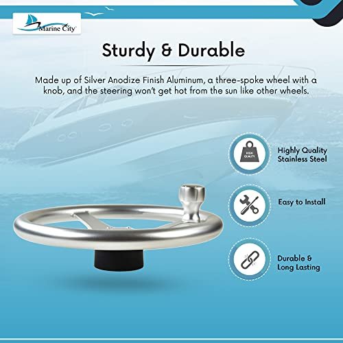 The included aluminum knob enhances maneuverability, allowing smoother turns and better control while docking, sailing, or navigating tight spaces. With a standard 3/4” tapered shaft fit and compatibility with a 6-bolt mounting pattern, this wheel works with most standard marine steering systems.
