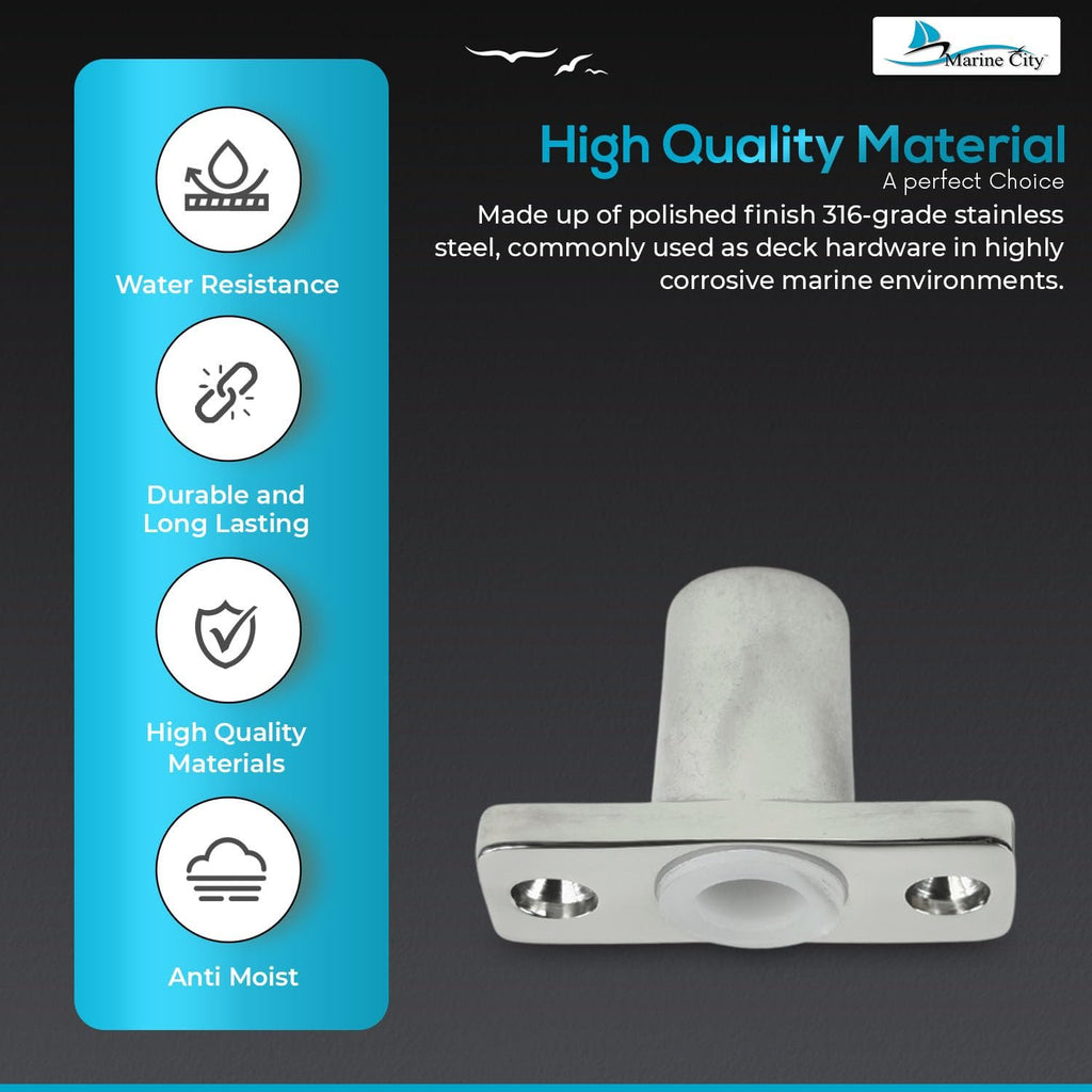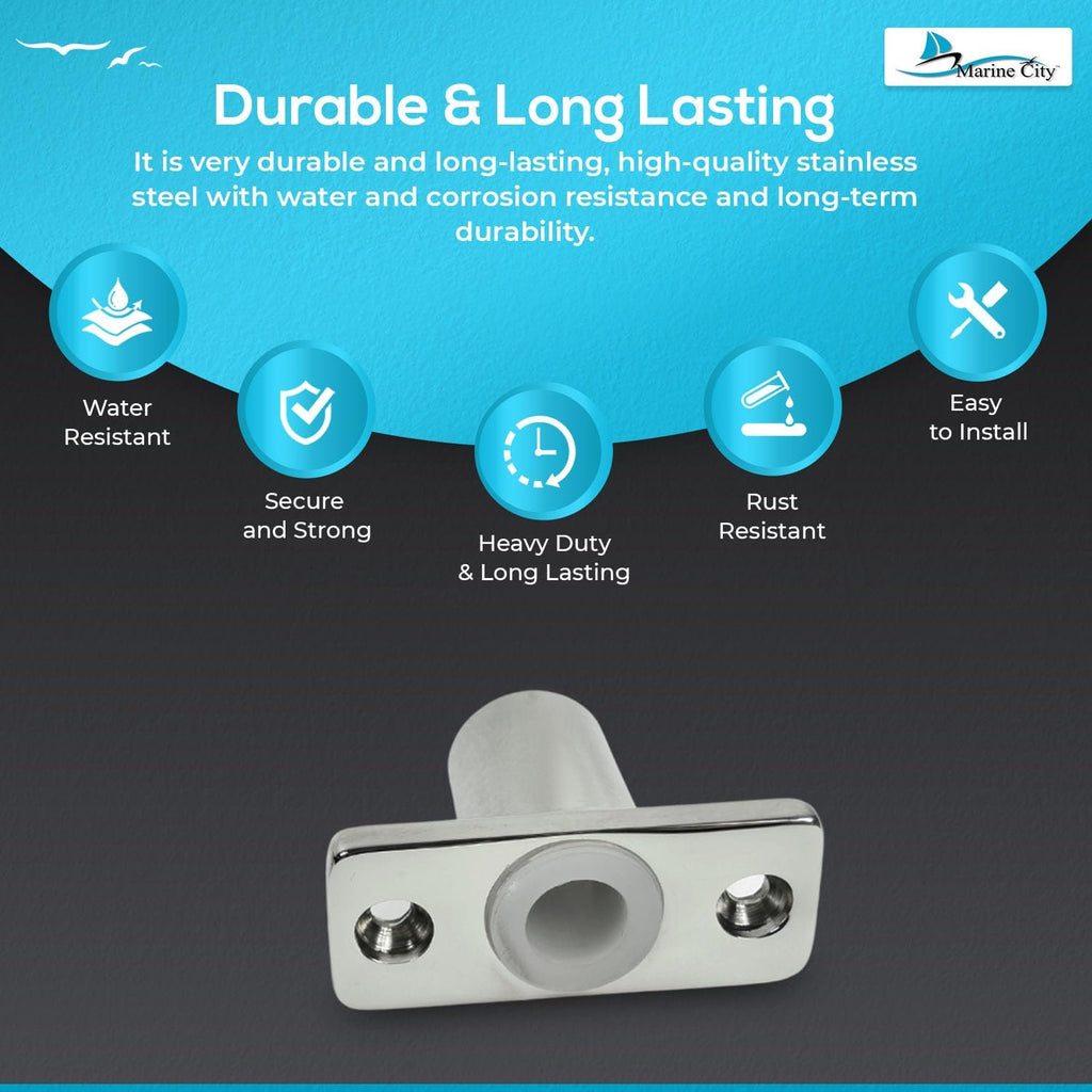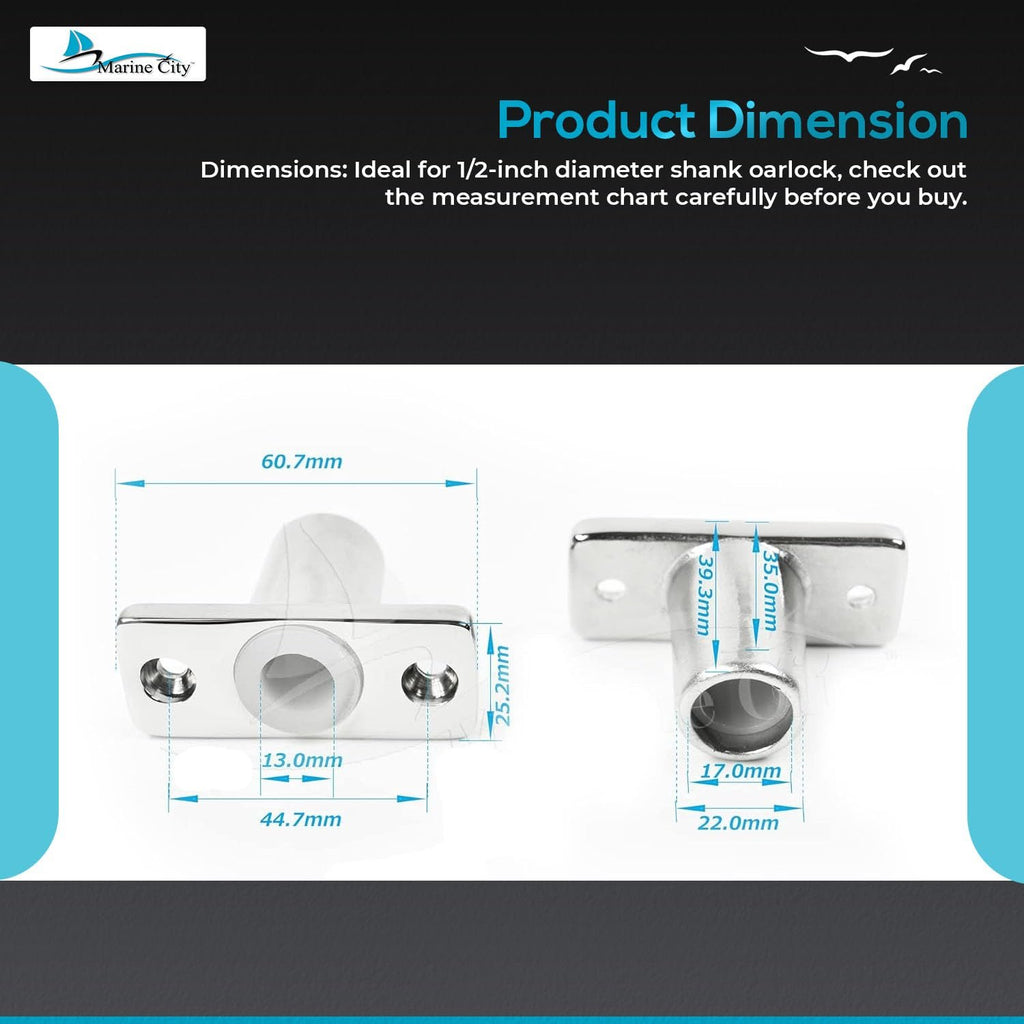 The Marine City 316 Stainless Steel Top Mount Rowlock/Oarlock Socket (Pack of 2) is designed for strength, durability, and smooth rowing performance in marine environments. Crafted from polished marine-grade 316 stainless steel, these sockets resist corrosion, rust, and wear, ensuring long-term reliability even in harsh saltwater conditions.