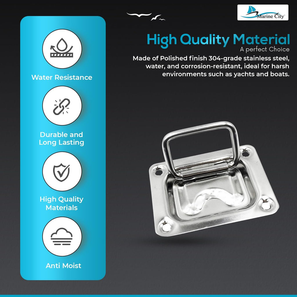 Its polished stainless steel finish enhances both aesthetics and performance, making it ideal for boats, yachts, ships, and marine floor lockers. Beyond marine use, this versatile handle is also perfect for home furniture applications, including cabinets, drawers, closet doors, cupboards, and pocket doors.