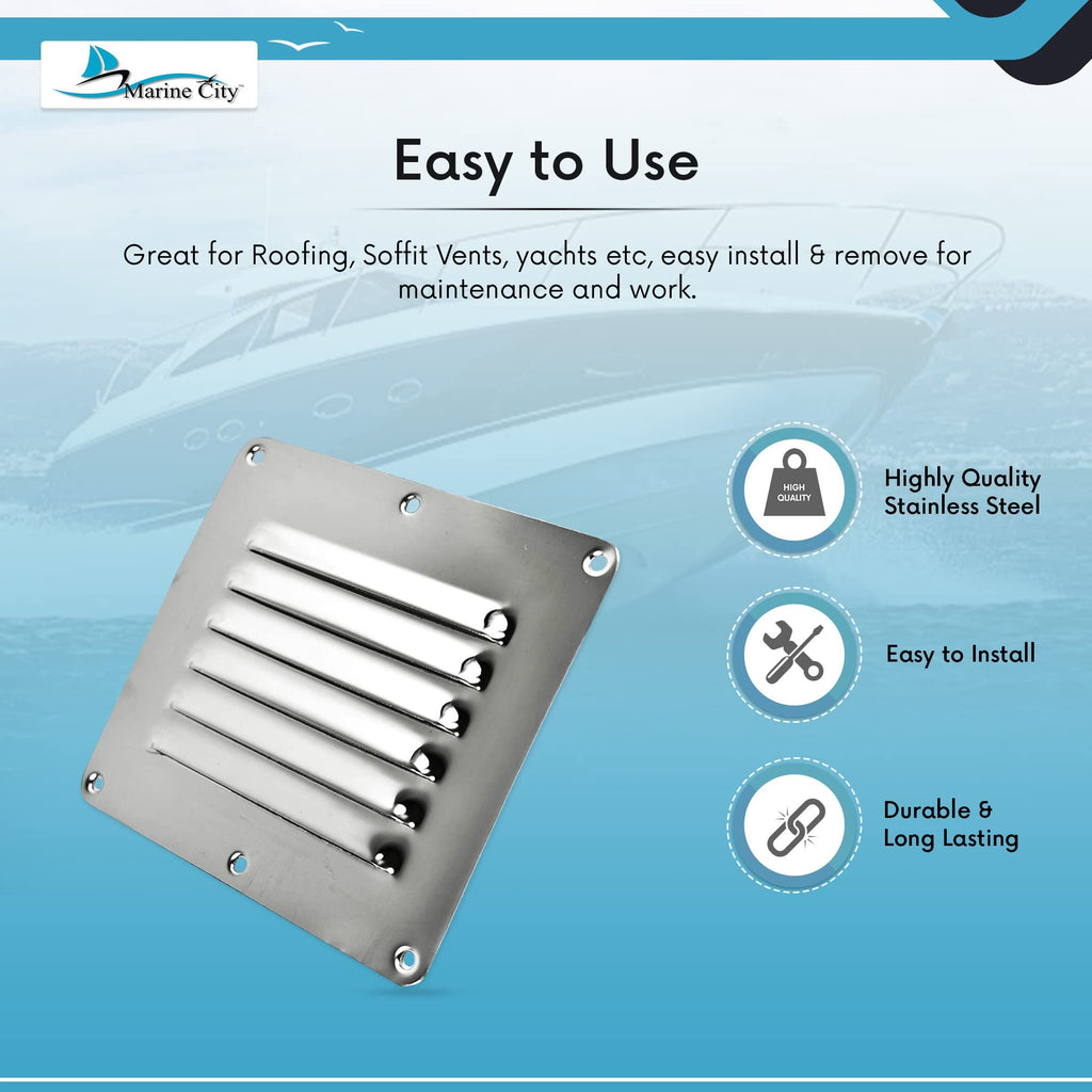 Marine City Stainless-Steel 4-1/2” × 5” Rectangle Stamped Louvered Ven – Marine City Hardware