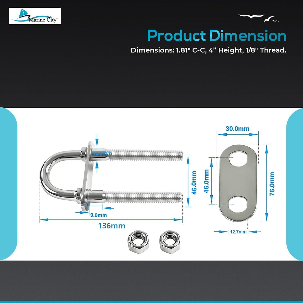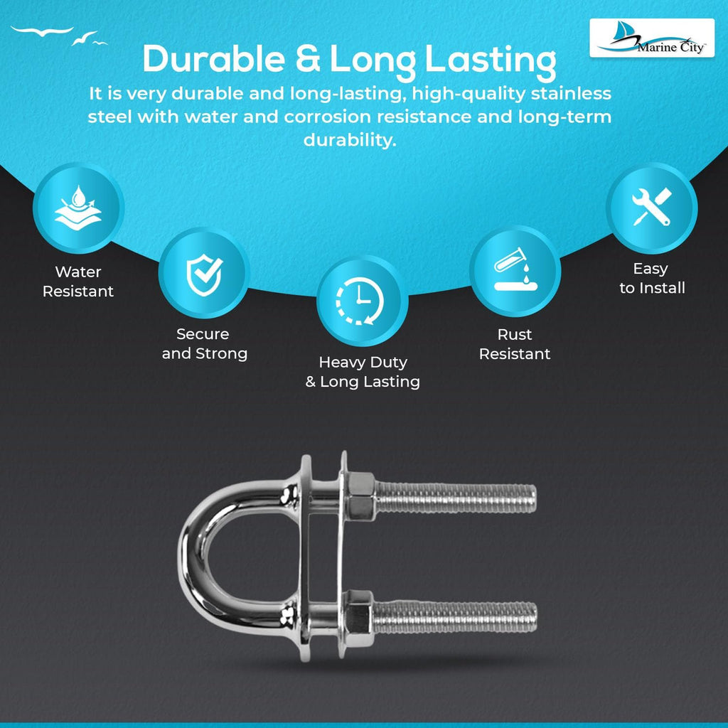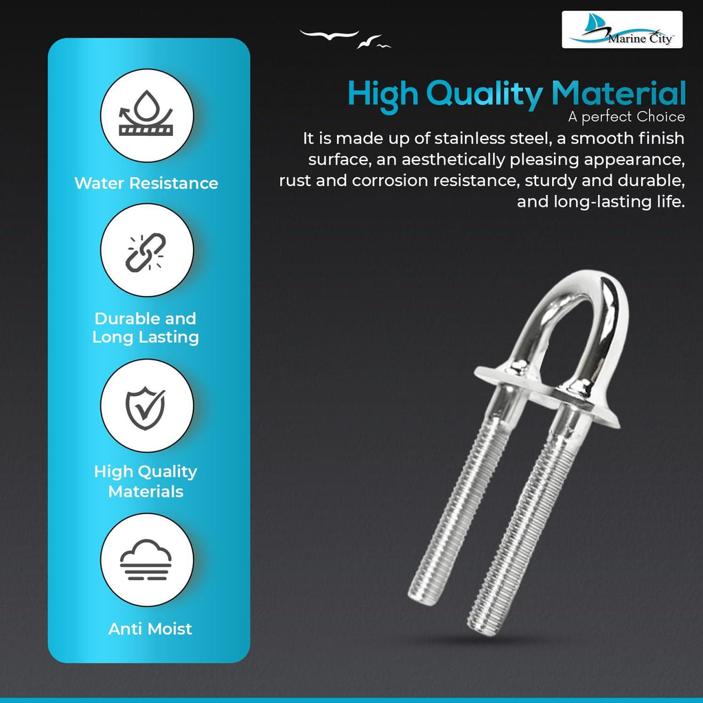 The Marine City Boat Stern Bow Eye Tie Down U-Bolt is a high-quality stainless steel marine-grade deck hardware designed for strength and durability. Its polished exterior ensures corrosion resistance, making it suitable for saltwater and highly corrosive marine environments.