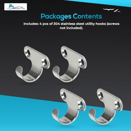 The Marine City Light Duty Utility Hooks (Pack of 4) are crafted from stamped 304-grade stainless steel, ensuring corrosion resistance and long-lasting durability in marine and outdoor environments. These hooks are perfect for hanging hammocks, ropes, lines, or lightweight items on boats, yachts, and ships, or for general household and outdoor utility.