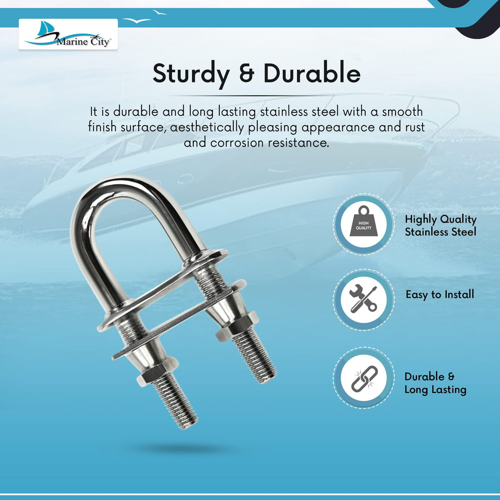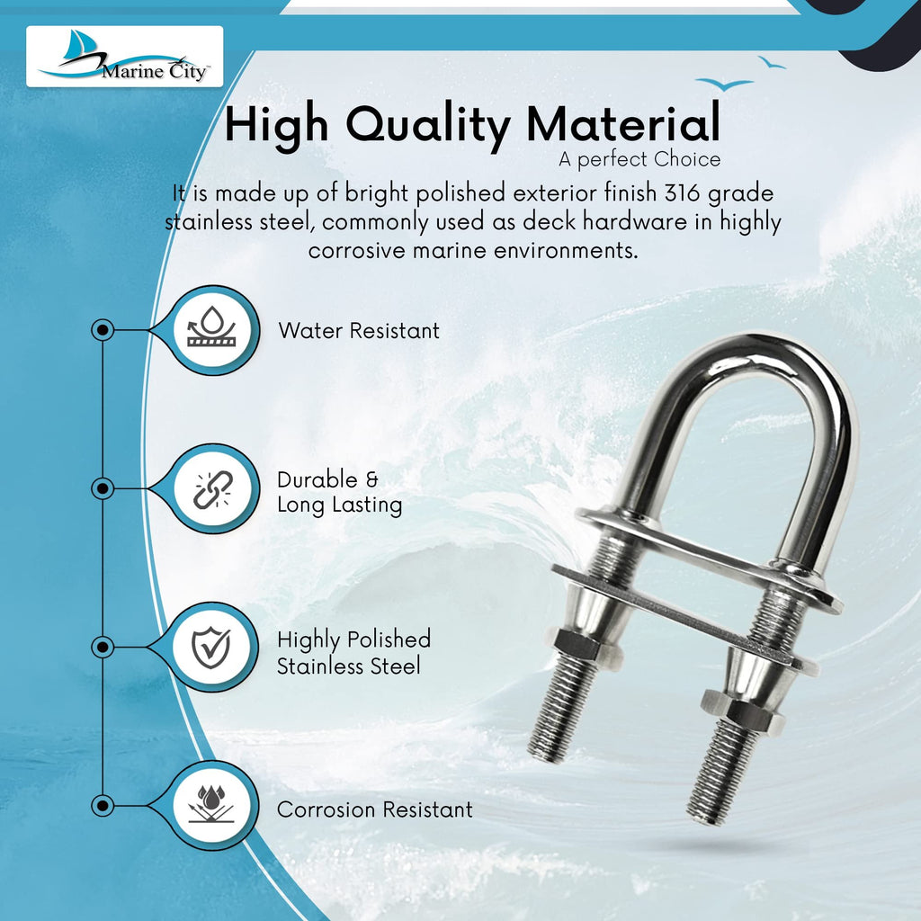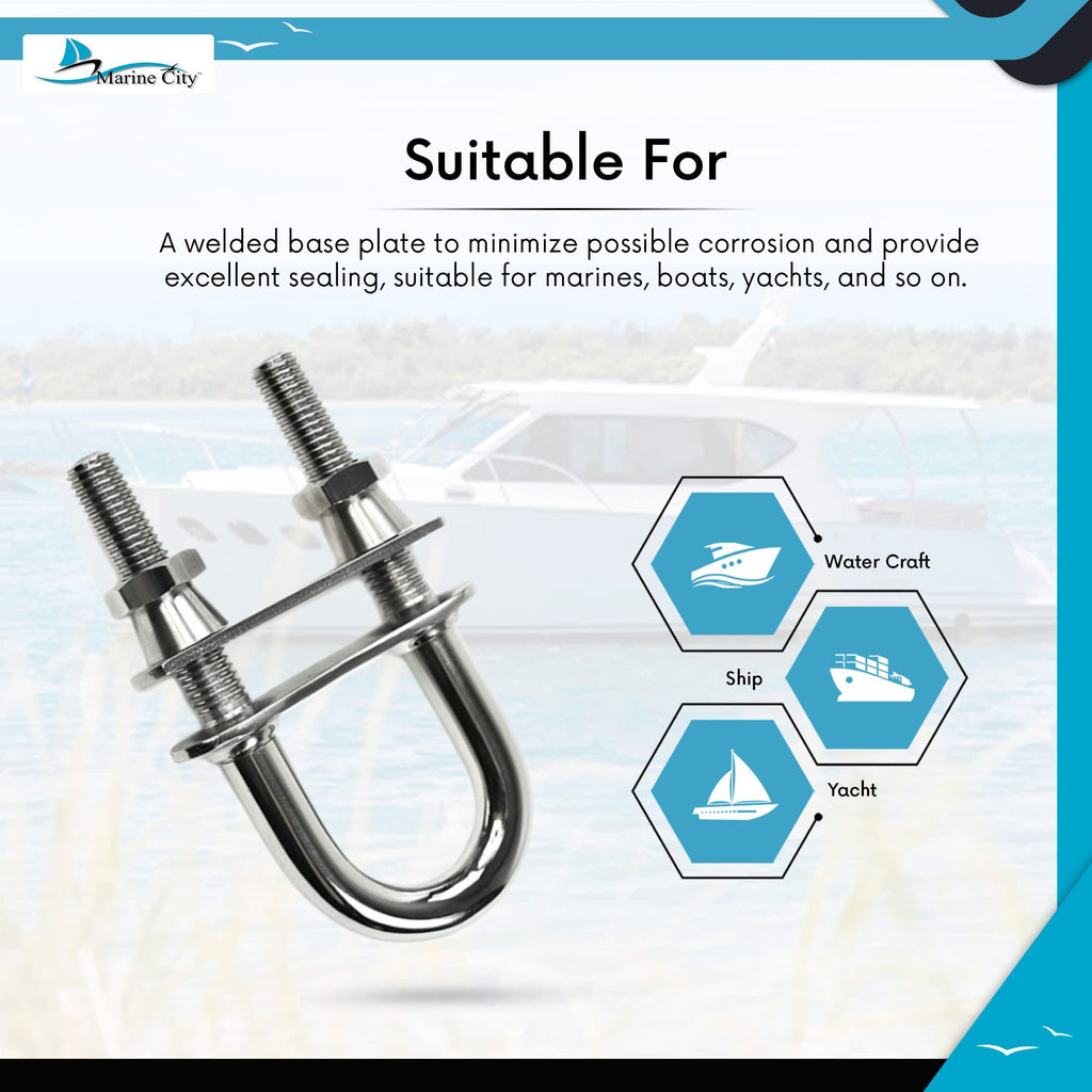 Perfect for boats, yachts, RVs, decks, and marine vessels, this U-bolt can be used for vents, railings, and other hardware requiring secure fastening in highly corrosive environments. The included washer and special nuts allow for easy, secure installation.