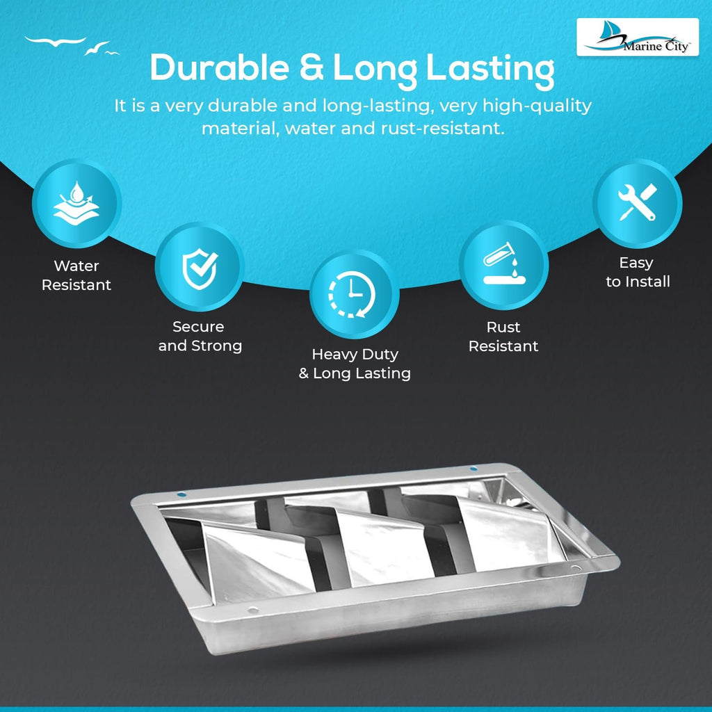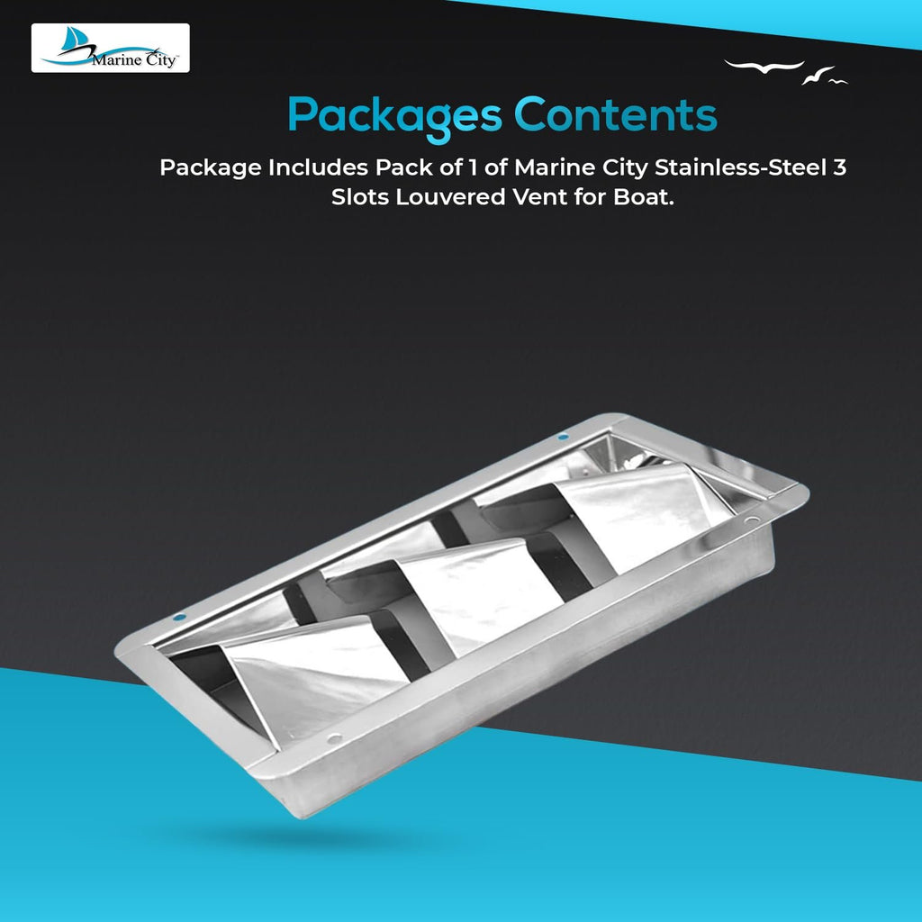 Easy to install and remove, the Marine City 3-slot louvered vent is suitable for roofing, soffit vents, and other indoor/outdoor applications, providing both functional ventilation and a clean, professional appearance. With its heavy-duty stainless steel construction and polished finish, this vent combines marine-grade reliability with style.