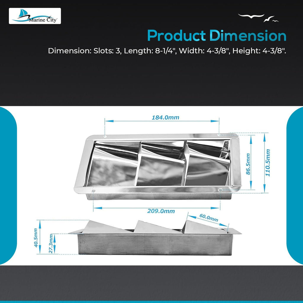 3 Slot Stainless Steel Louvered Vent 8-1/4 Inches - Marine City – Marine City Hardware