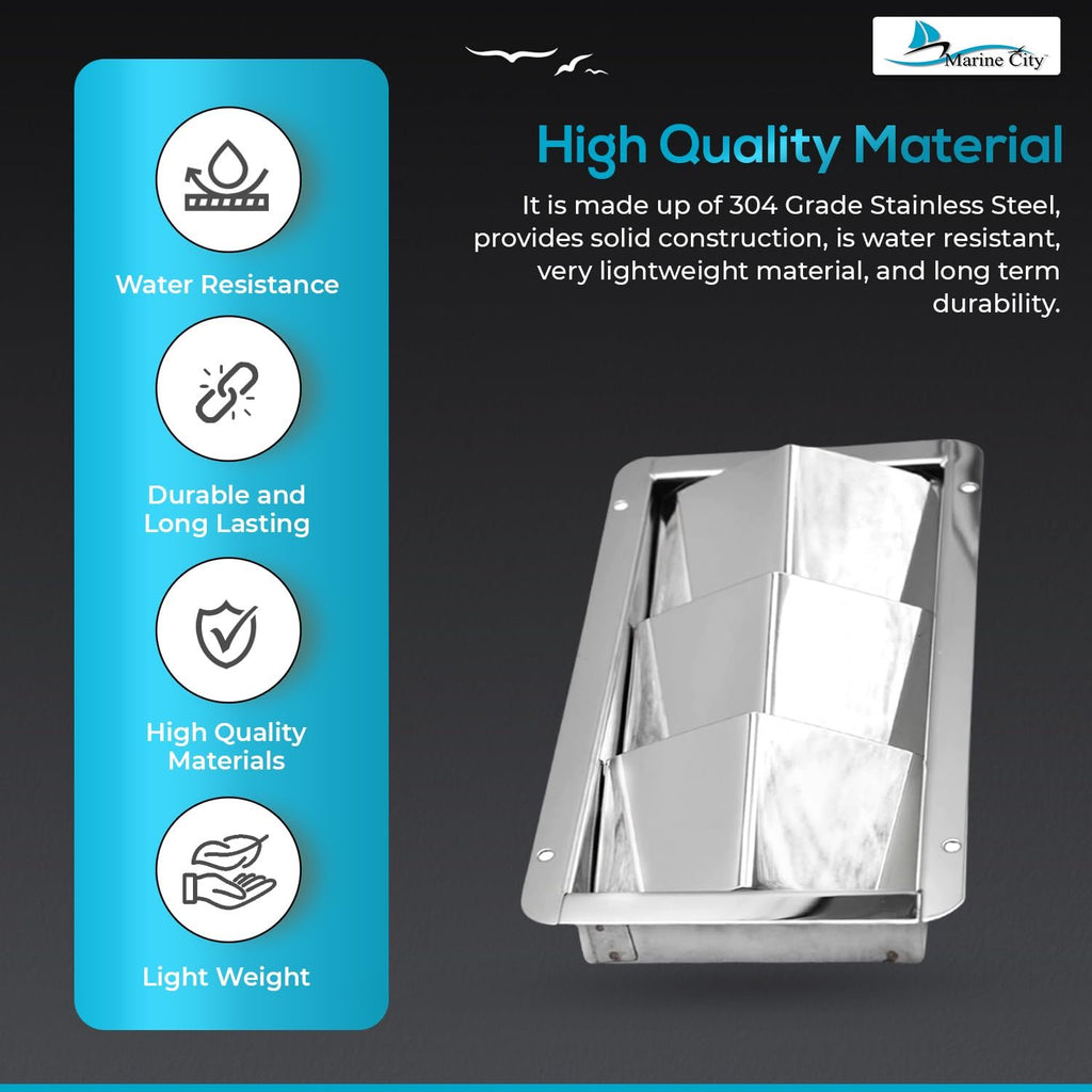 Enhance ventilation and protect your marine or residential spaces with the Marine City Stainless Steel 3-Slot Louvered Vent. Crafted from high-quality stainless steel with a mirror-polished finish, this vent provides excellent corrosion resistance, durability, and long-term performance in harsh marine and outdoor environments.
