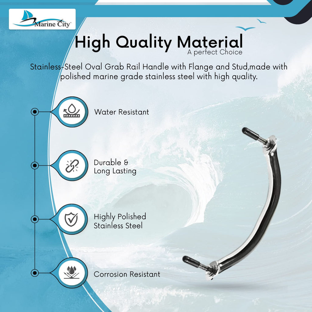 The Marine City 7-7/8 Inch Stainless Steel Oval Grab Rail Handle is a compact yet heavy-duty safety accessory designed specifically for boats, yachts, and ships. Manufactured from high-quality polished marine-grade stainless steel, this grab rail offers exceptional resistance to corrosion, rust, and moisture—making it suitable for demanding marine environments.