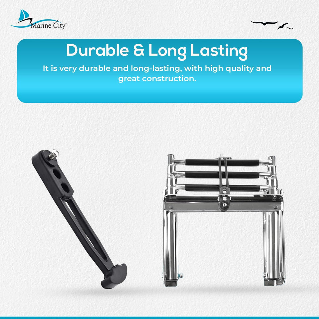 This latch band features a bungee rope rubber holder that ensures ladders stay securely in place, preventing movement or slippage during boarding. Designed with 3 adjustable mounting holes, it is compatible with most modern ladder models and serves as an ideal replacement for 2-step or 3-step telescopic ladder straps.