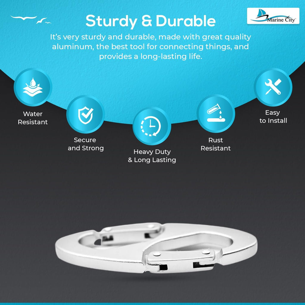 The Marine City 8-Shape Carabiner Buckle Snap Clip Hook (Pack of 4) is a versatile and lightweight solution for connecting, hanging, and organizing gear. Made from high-quality aluminum alloy, it offers excellent resistance to oxidation, water, and wear while remaining strong and easy to handle.