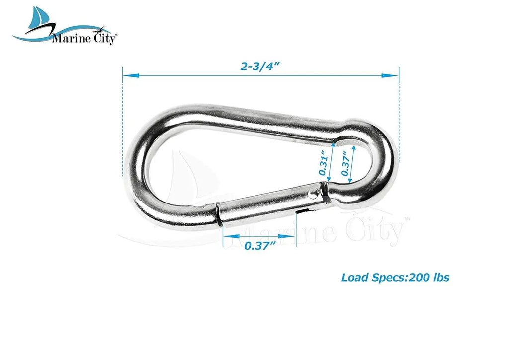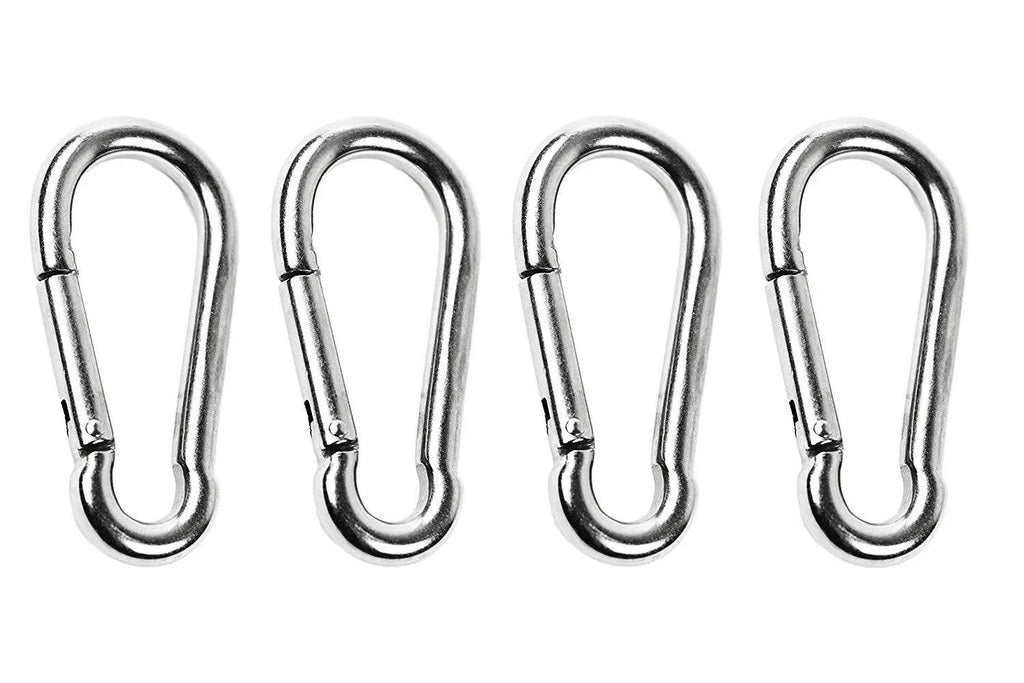 It is made of 316-grade stainless steel. Great for Camping, Hiking, Fishing, Travel, Sports, Activities, Backpack, Key Ring, Keychain, Split Rings, Belt Loops, Pants Loop, Purse Straps, Briefcase, Straps, almost anything. Not for Rock Climbing.