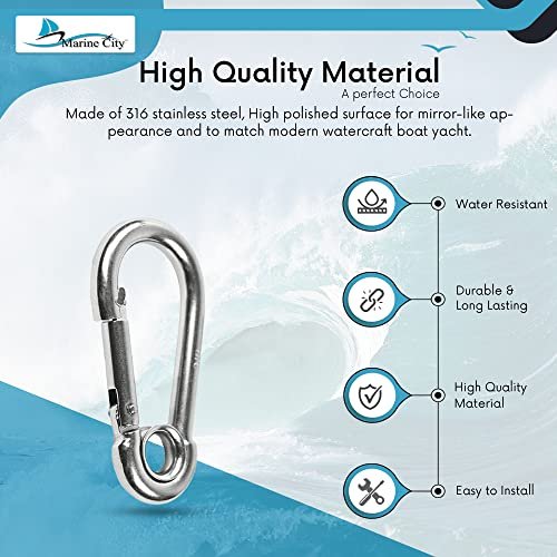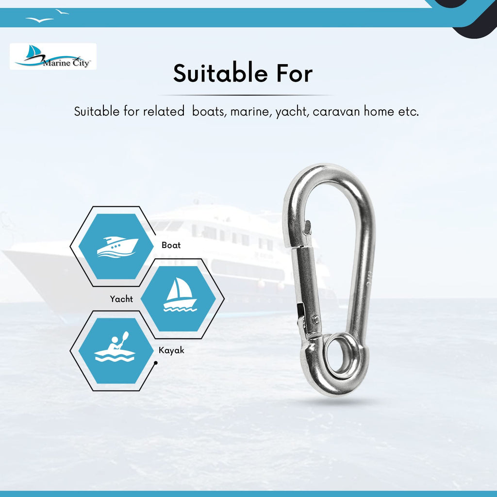 Features:-It is made of 316-grade stainless steel. Length: 89.45 mm/ 3-1/2 inch, Width: 44.5 mm / 1-3/4 inch.Perfect for sailing, boating, many other marines and rough weather applications.Great for Camping, Hiking, Fishing, Travel, Sports, Activities, Backpack, Key Ring, Keychain, Split Rings, Belt Loops, Pants Loop, Purse Straps, Briefcase, Straps, almost anything. Not for Rock Climbing.