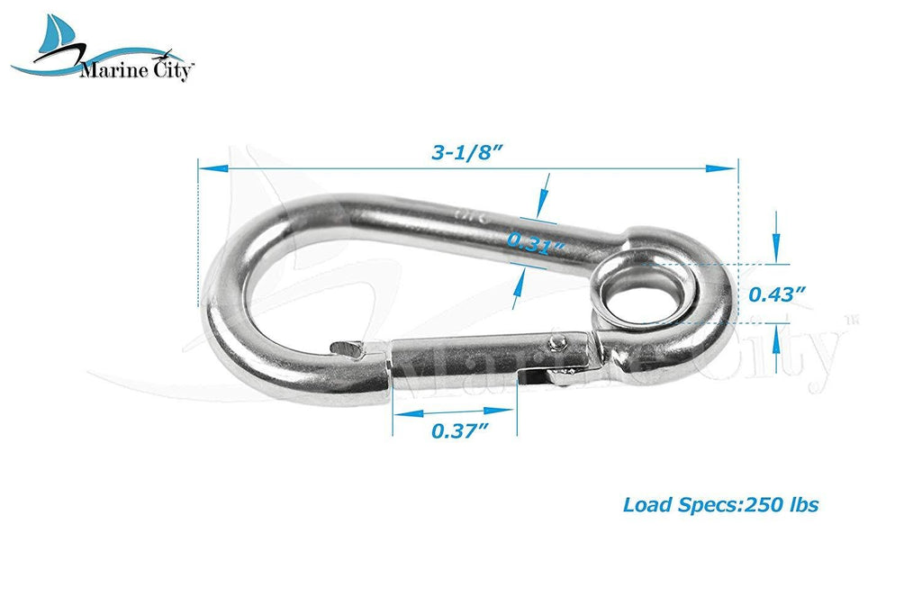 Marine City 316 Stainless-Steel 3-1/8” Carabiners/Clip Snap Hook with Ring for Sailing, Fishing, Hiking (1 PC)