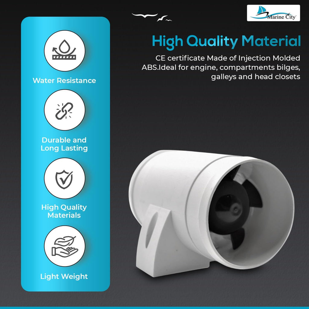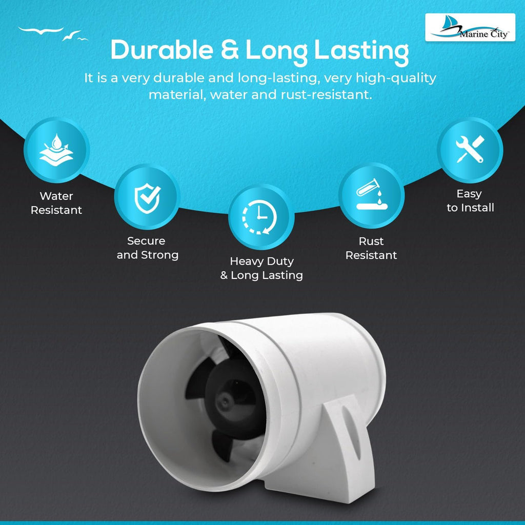Ensure safe and efficient ventilation in your boat, RV, or marine compartments with the Marine City 12-Volt 3-Inch Hose Bilge Blower. Designed with a durable injection-molded ABS housing, this compact blower is lightweight, corrosion-resistant, and built to last in demanding marine and RV environments.