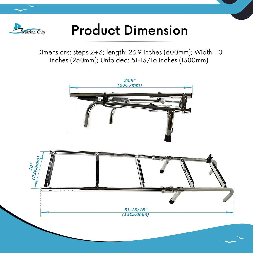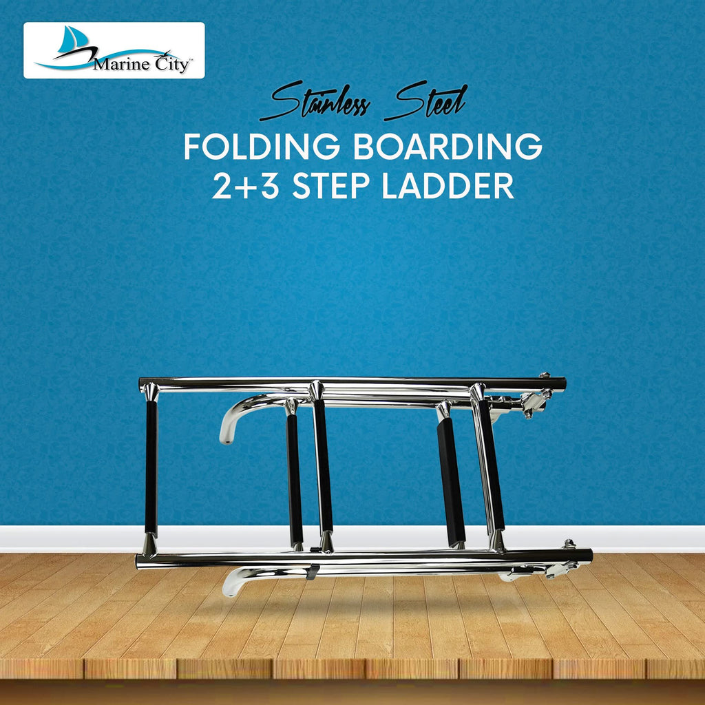 Marine City 2+3 Step Foldable Boarding Ladder w/ Handrails – 304 Stainless Steel