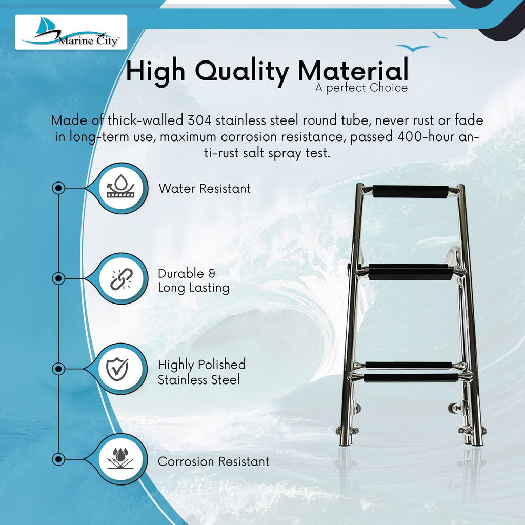 Tested for extended anti-rust performance, this ladder is built to withstand harsh saltwater conditions without dimming or degrading over time. Its smooth deployment allows the ladder to slide effortlessly into the water, while the foldable structure ensures it can be quickly stowed away to maintain a clean and organized deck.