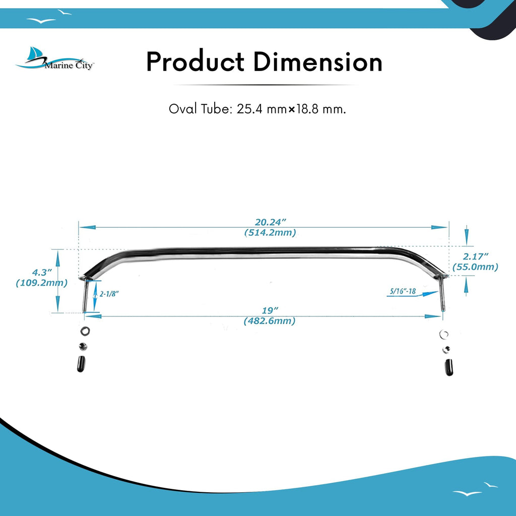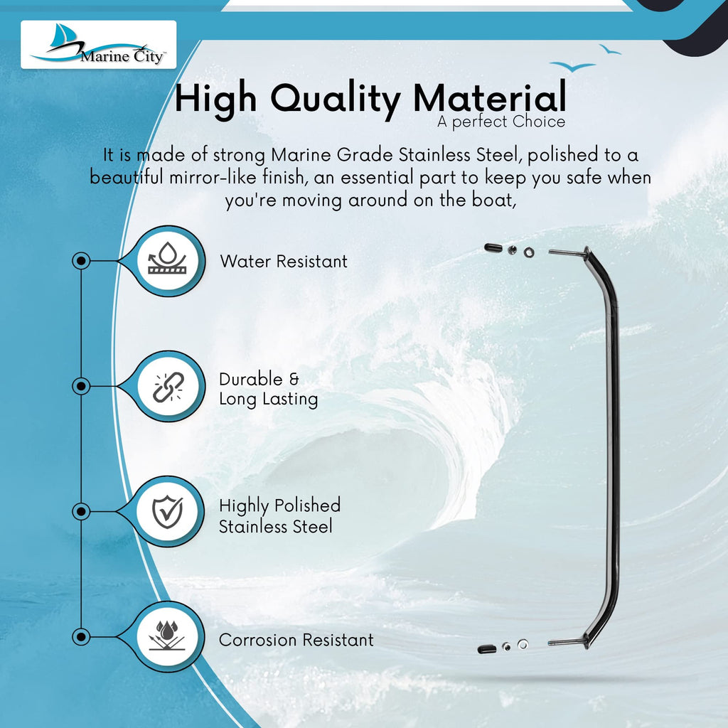 The Marine City 19” Oval Tube Boat Grab Handle is designed to enhance safety, durability, and style on your vessel. Crafted from marine-grade stainless steel, this handrail provides superior corrosion resistance and long-lasting strength in harsh marine environments.