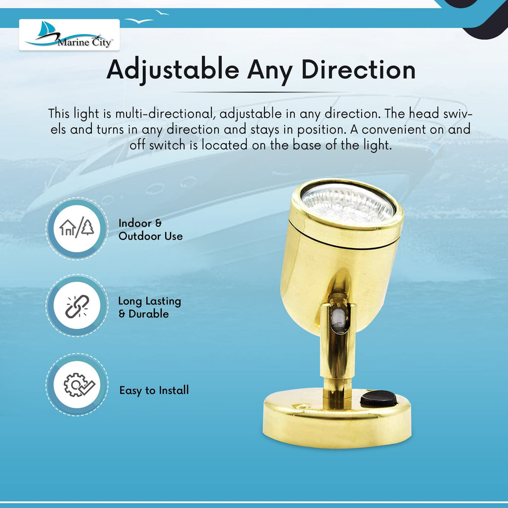 Package Includes: Marine City Brass Swivel Head Cabin Reading LED Light