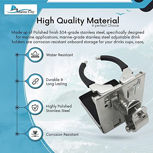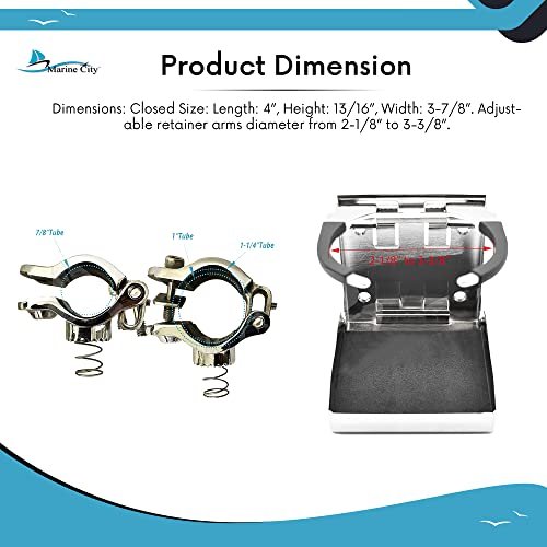 The Marine City 304 Stainless Steel Multi-Functional Adjustable Folding Cup Holder (Small) is designed for secure and convenient beverage storage on boats, yachts, RVs, and watercraft. Crafted from polished 304 marine-grade stainless steel, this folding cup holder is durable, corrosion-resistant, and built to withstand harsh marine conditions.