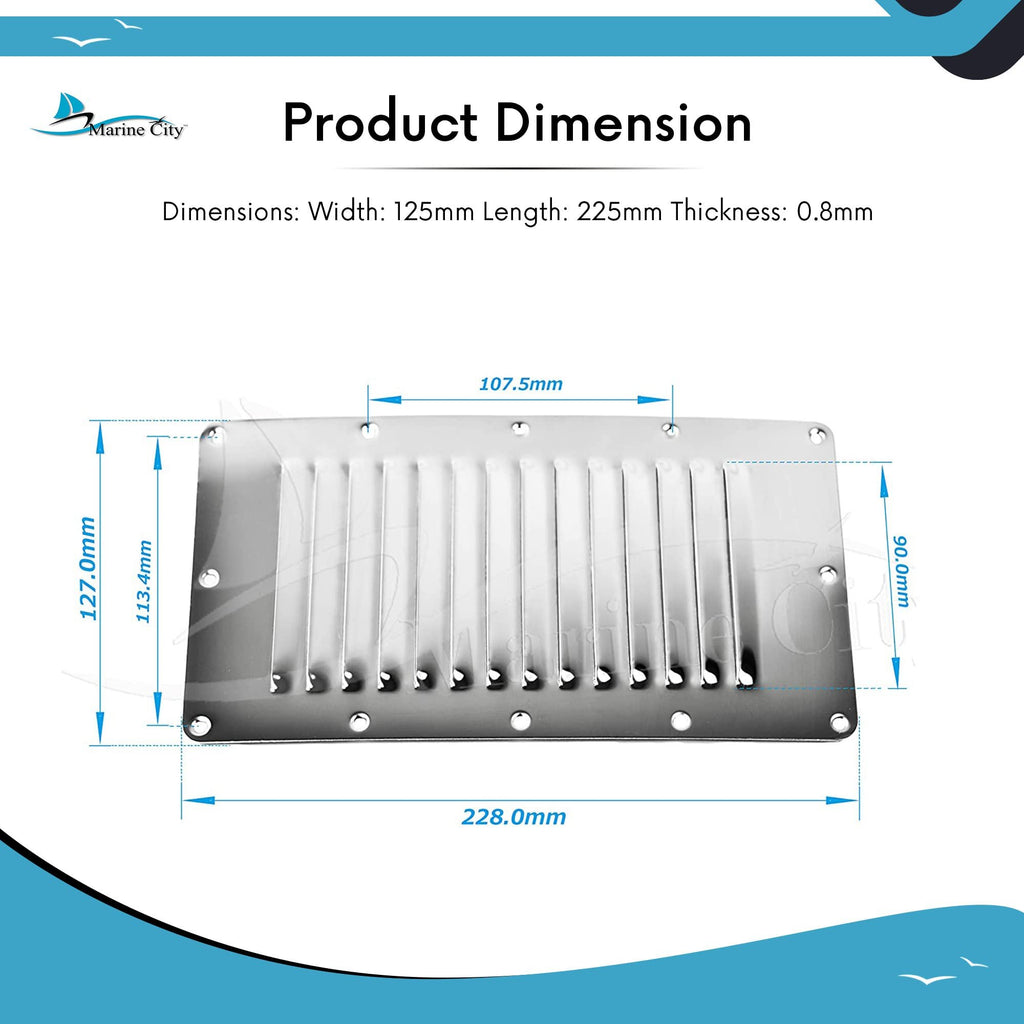 Marine City Ventilación con rejilla estampada rectangular de acero inoxidable de 5 pulgadas × 9 pulgadas