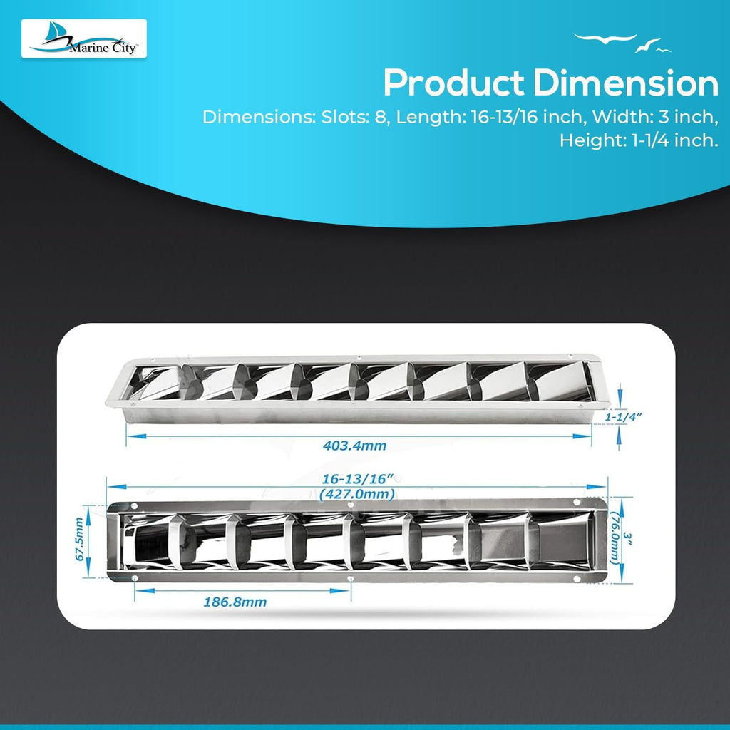 Marine City Ventilación con rejilla de acero inoxidable con 8 ranuras, 16-13/16” × 3” × 1-1/4” (2 piezas)