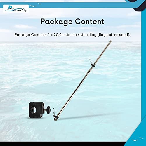 - • Contenido del paquete: 1 asta de bandera montada en riel de acero inoxidable de 21" (no incluye bandera)