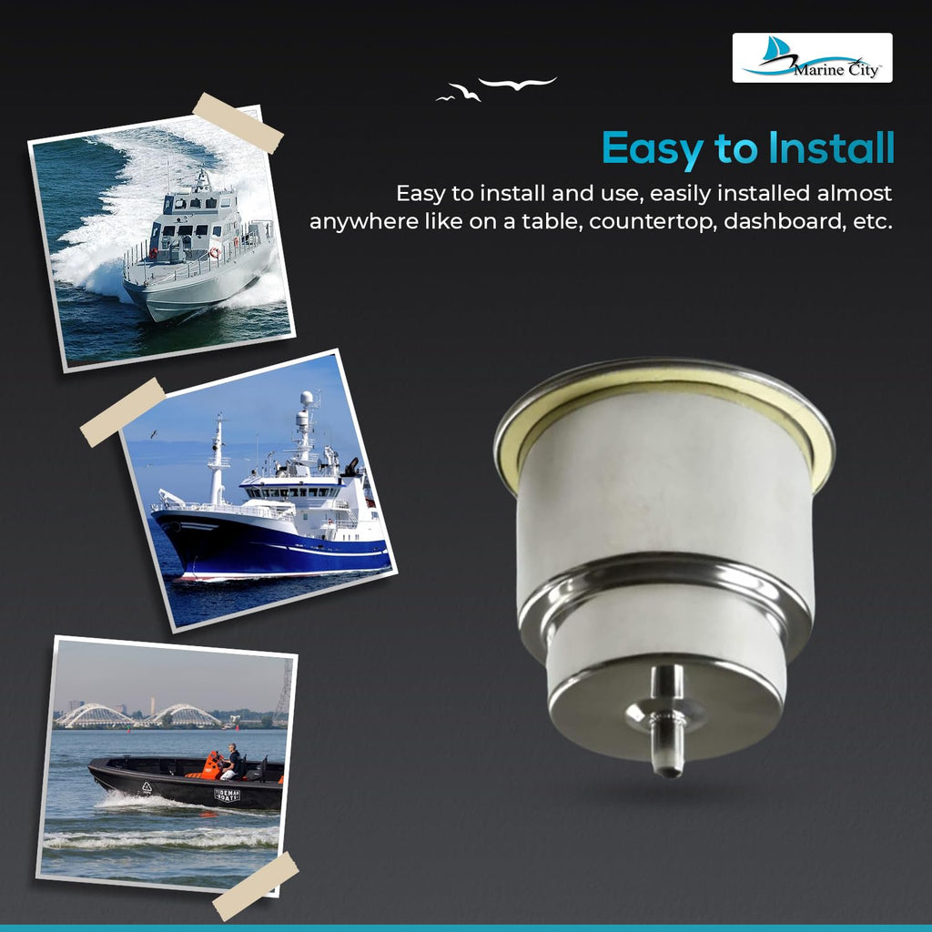 - - Portavasos de acero inoxidable con tubo de drenaje de 3/8" para embarcaciones marinas, vehículos recreativos